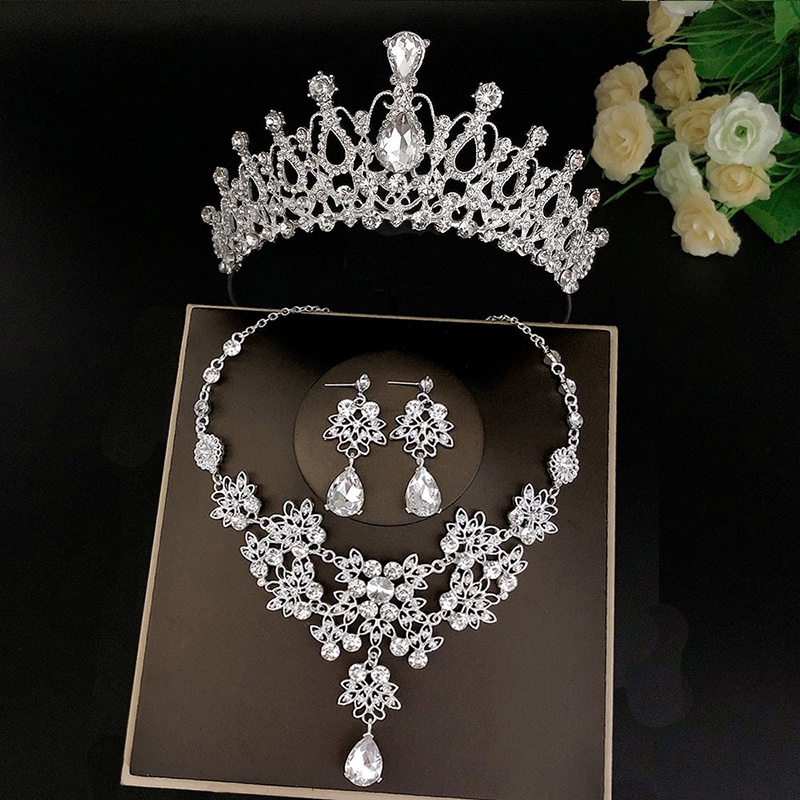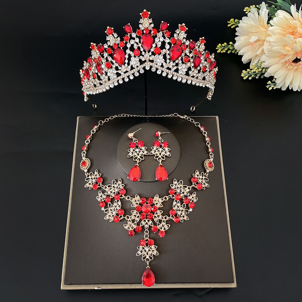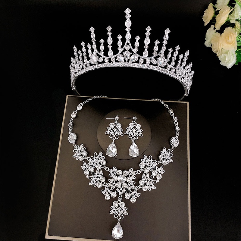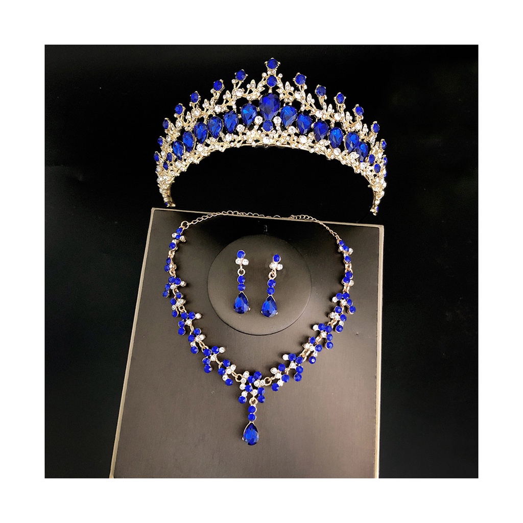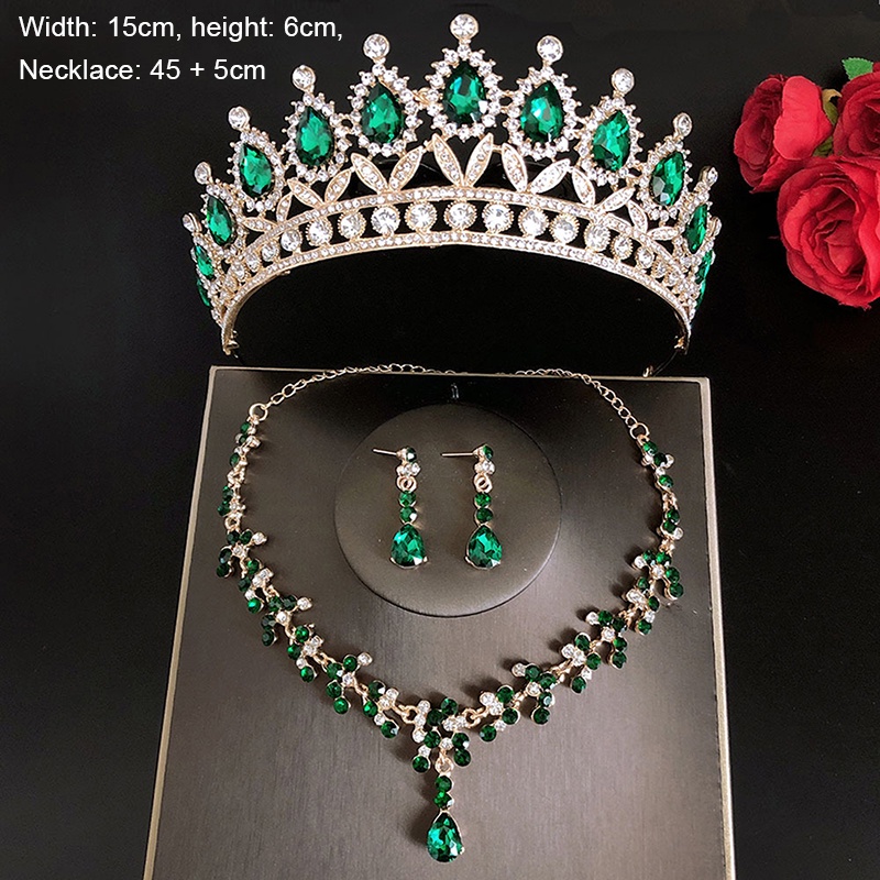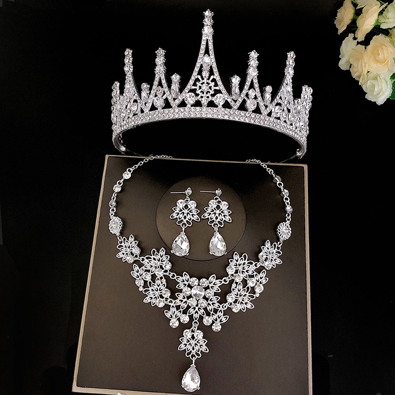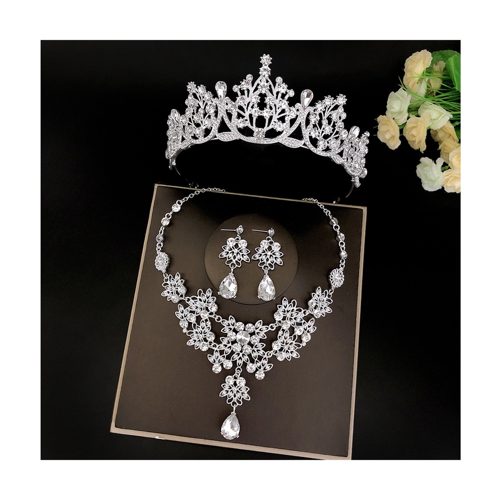 Bridal Tiaras Crown Set with Earring Kit & Necklack Handmade Luxury Crystal Hair Accessories for Party Prom