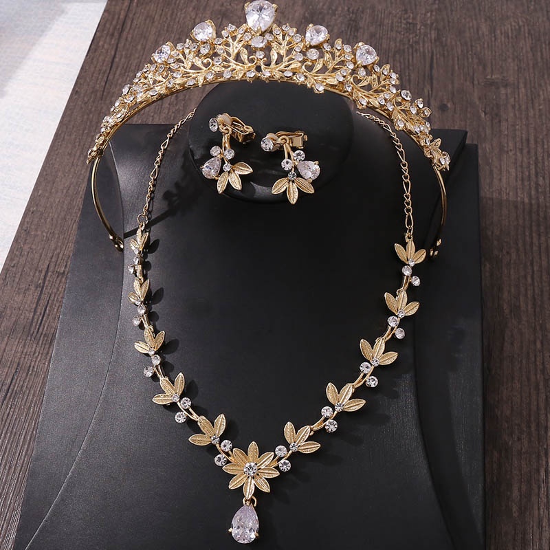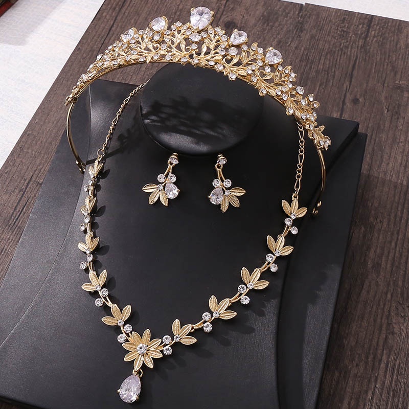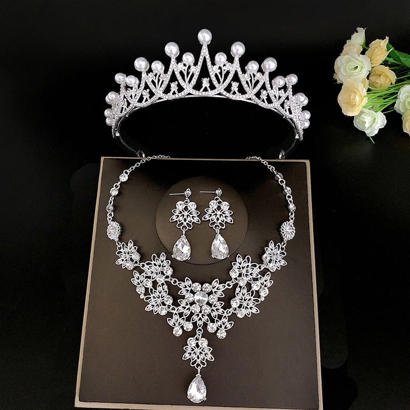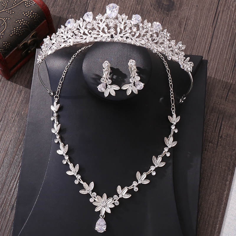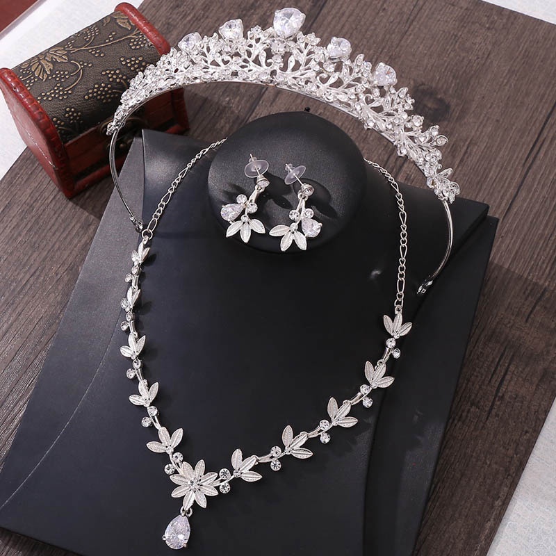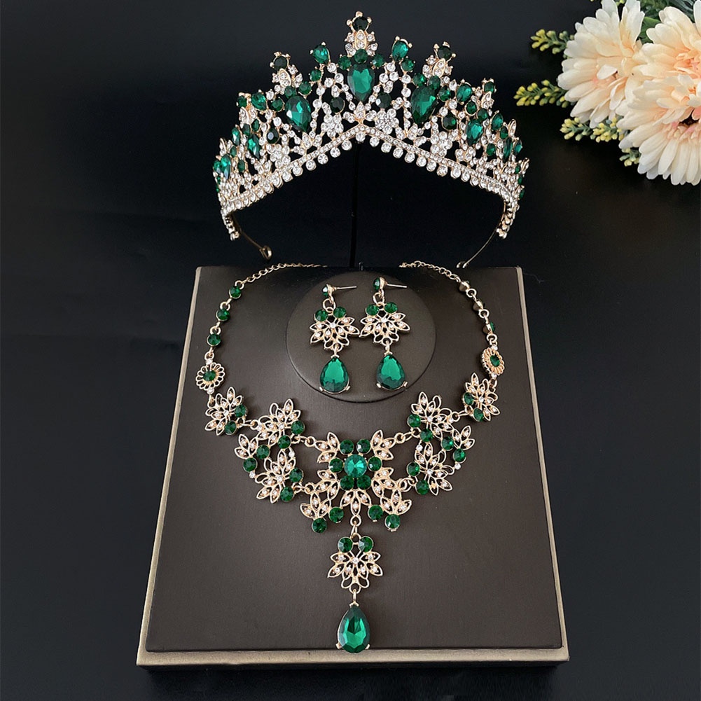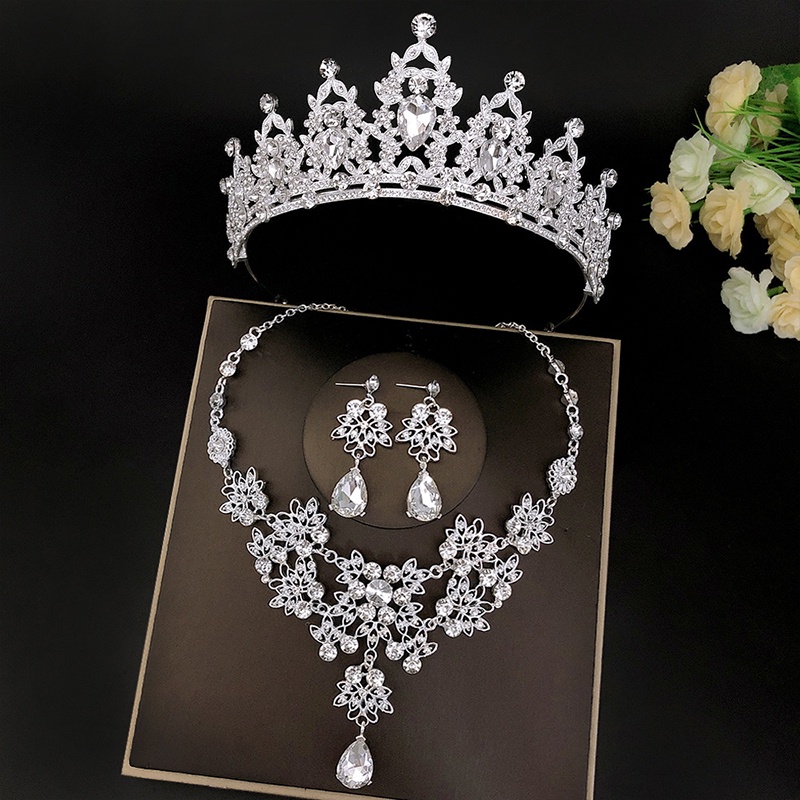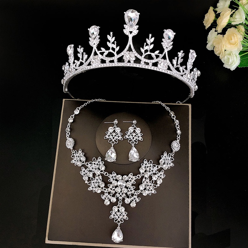 Bridal Tiaras Crown Set with Earring Kit & Necklack Handmade Luxury Crystal Hair Accessories for Party Prom