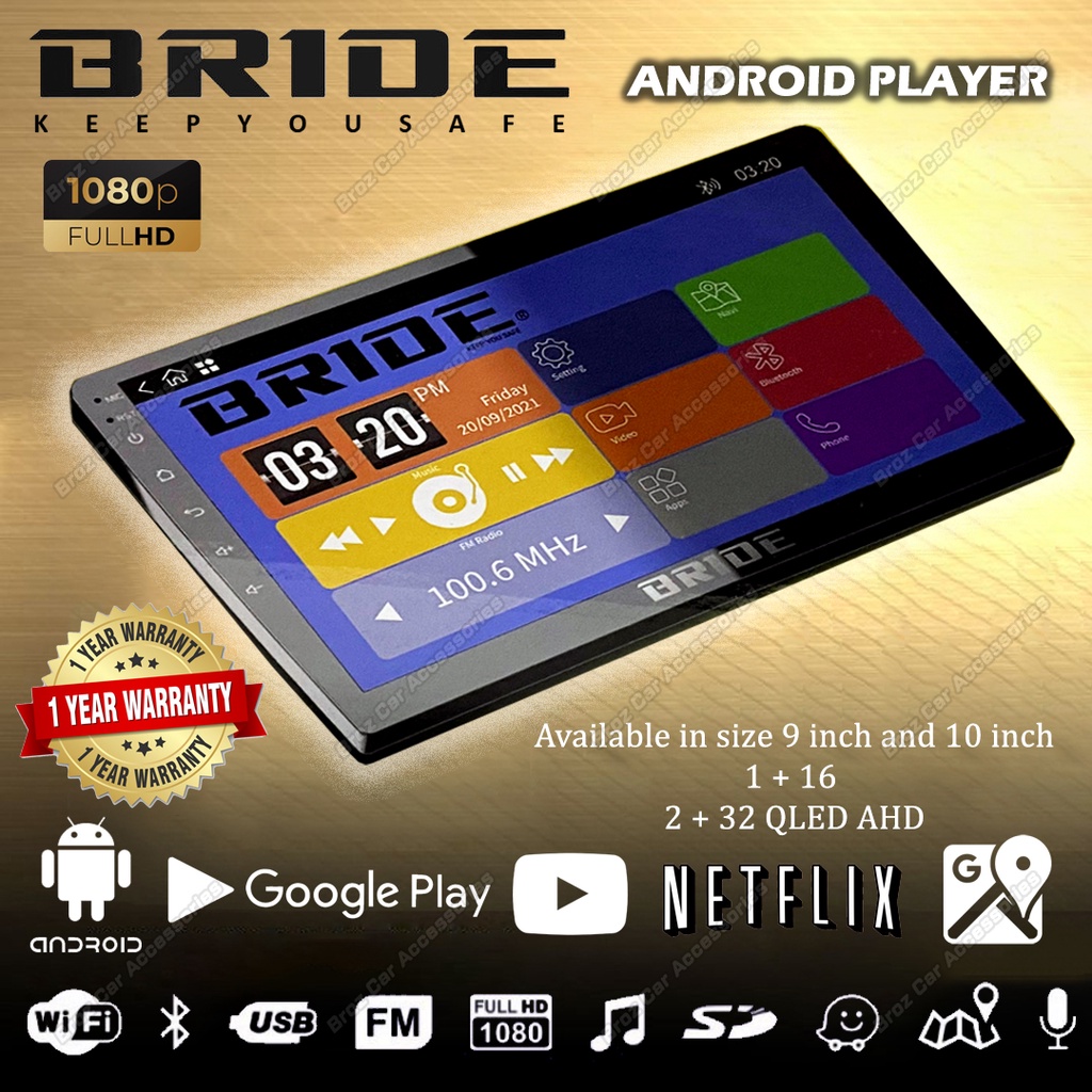 Bride Android Player 9 "/ 10" inch Touchscreen Multimedia Quad Core Car Wifi Bluetooth GPS Navigation Radio Player