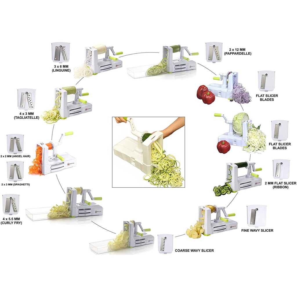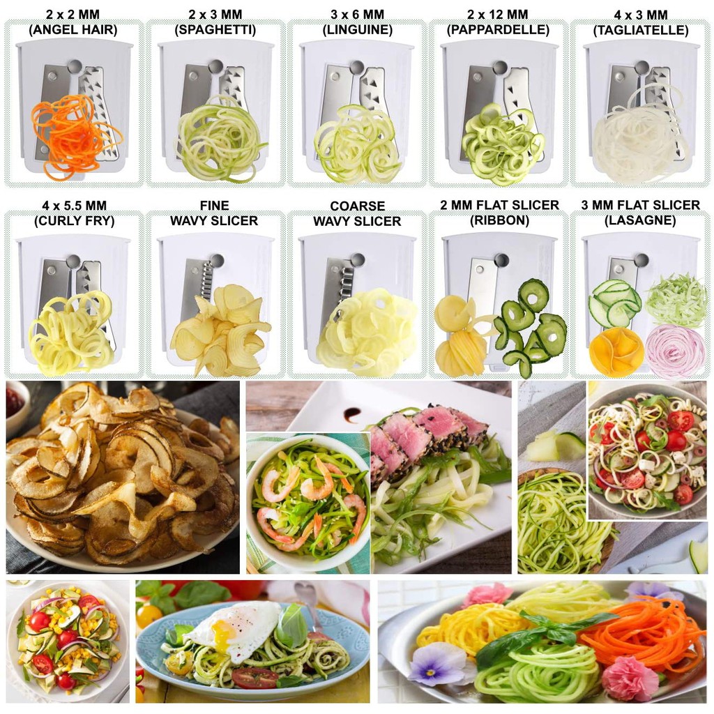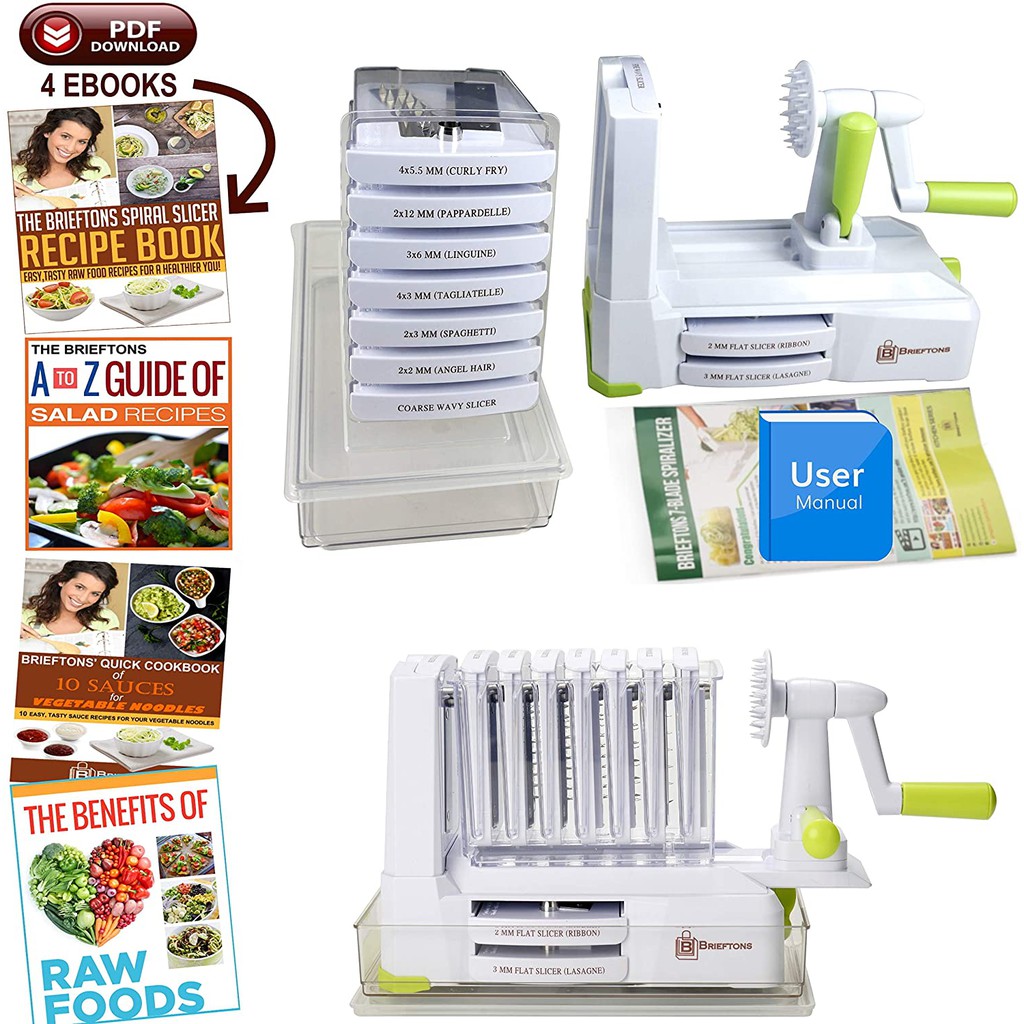 Brieftons 10-Blade Spiralizer: Strongest-and-Heaviest Vegetable Spiral Slicer, Best Veggie Pasta Spaghetti Maker