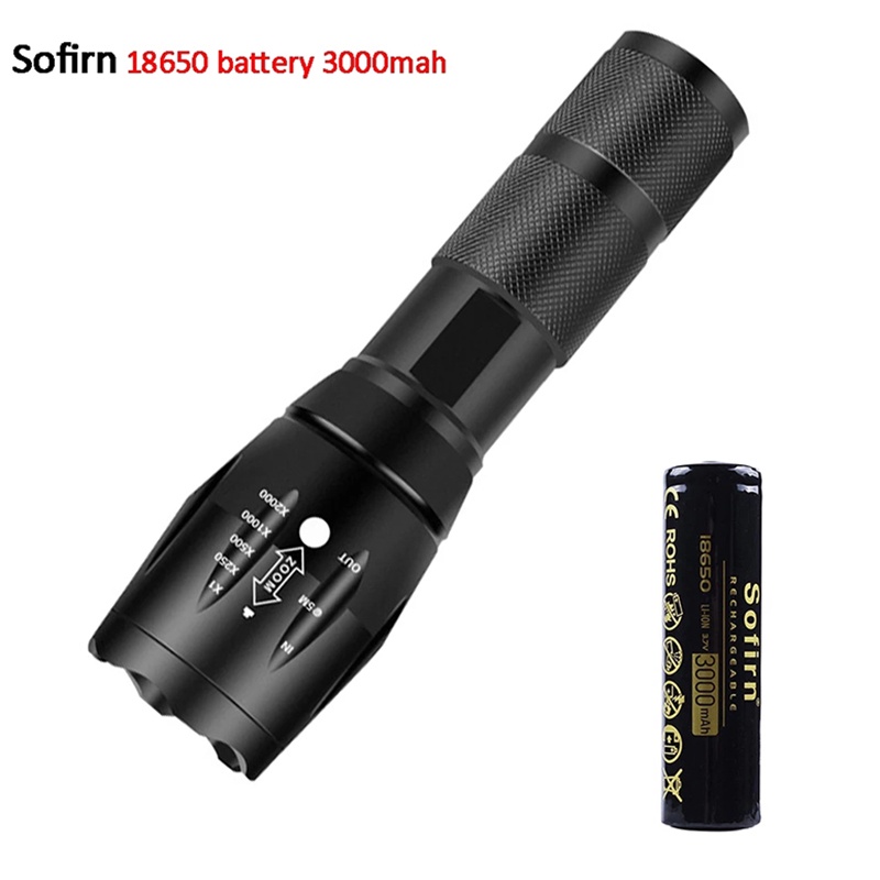 Bright zoomable flashlight torch with Sofirn 3000mah rechargeable 18650 cell