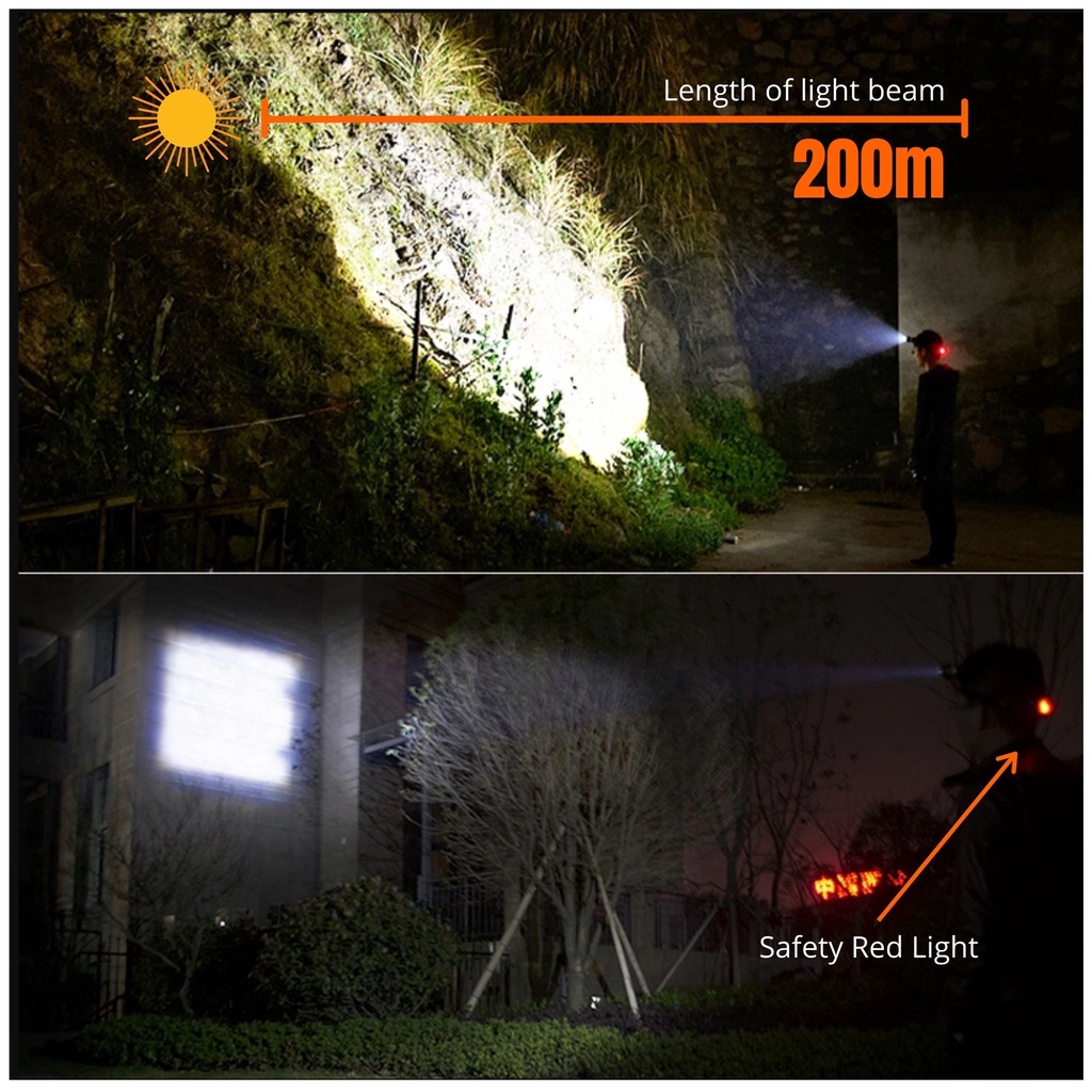 Brightest Head Lamp LED Headlight Rechargeable Waterproof Flashlight 4 Modes Headlamp ( 3000-2CD / T13-S )