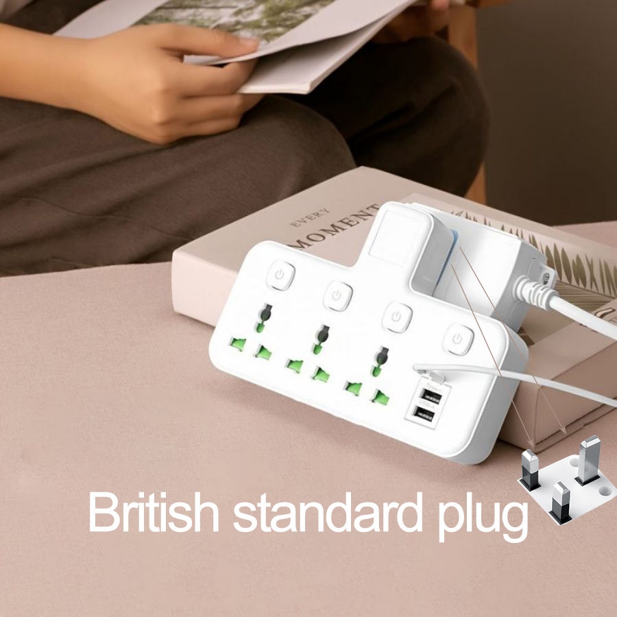 British Standard Plug Wall Plug Type Independent Switch Power Socket 3 Sockets 2 USB Interfaces 1 Type C 2500W