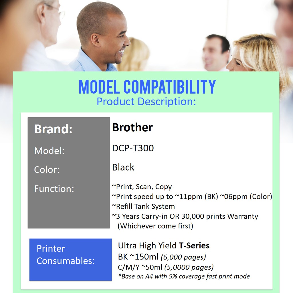 Brother DCP-T300 Printer-FREE Compatible Dr.Toner Brother T-series Ink (CMYK)