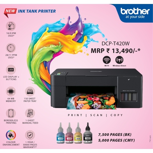 Brother DCP-T420W Multi-function Print,Copy,Scan,Wireless Inkjet Colour Hi-Speed USB 2.0 A4 Printer (DCPT420W,T420W)