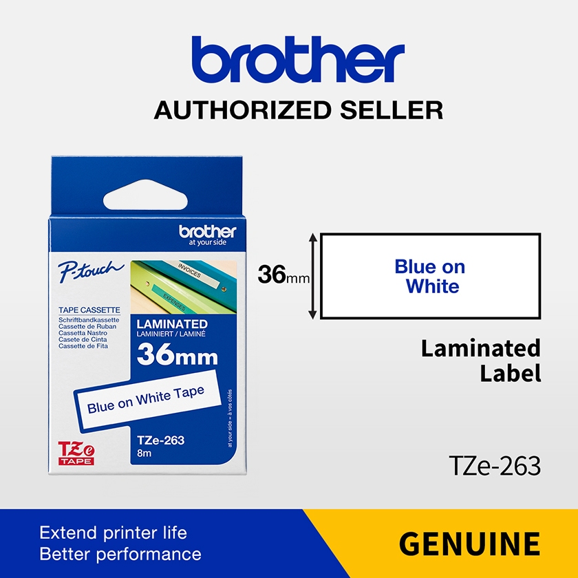 Brother 📐36mm 📏8m(Length) 💯🇲🇾Original 🏷️Laminated TZe Label For P-Touch (Black On White)