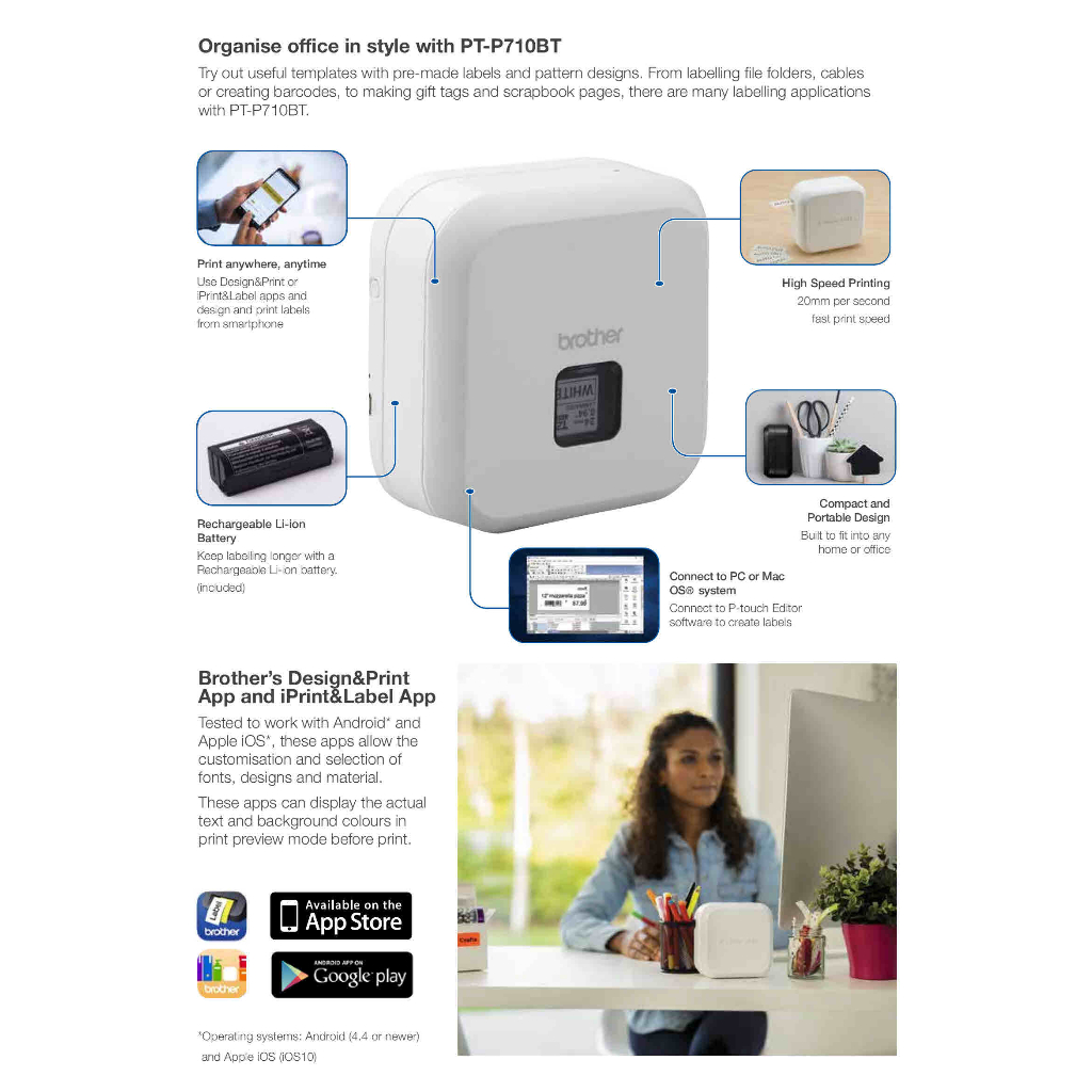 Brother PT-P710BT P-Touch Cube Smartphone Label Maker Bluetooth Printing PTP710BT PT-P710 PT-P710B