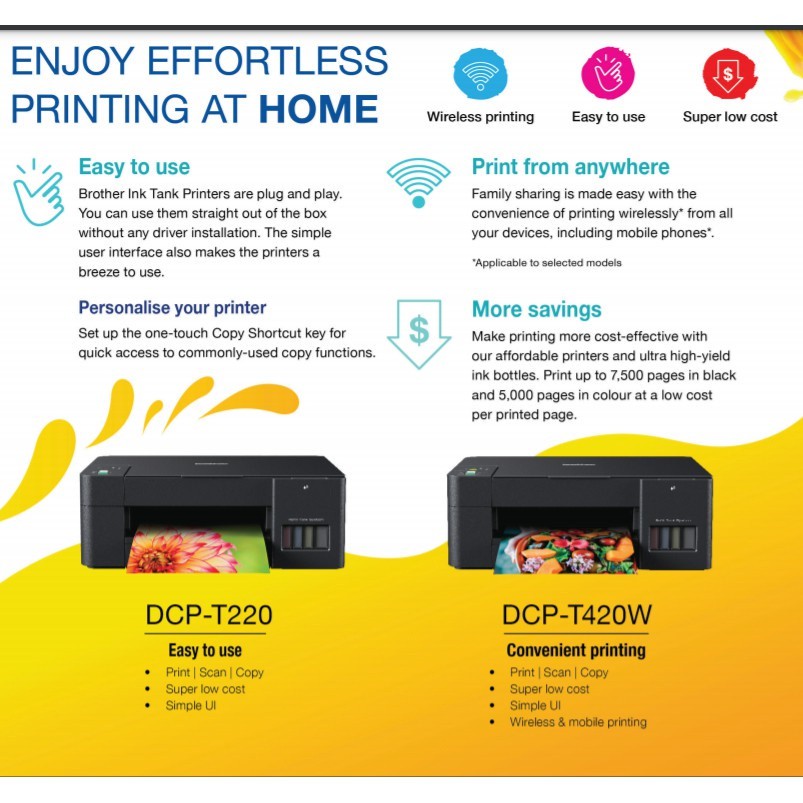 Brother Printer Inkjet DCP-T420W DCP-T520W Multifunction A4 ink Tank BTD60 BT5000