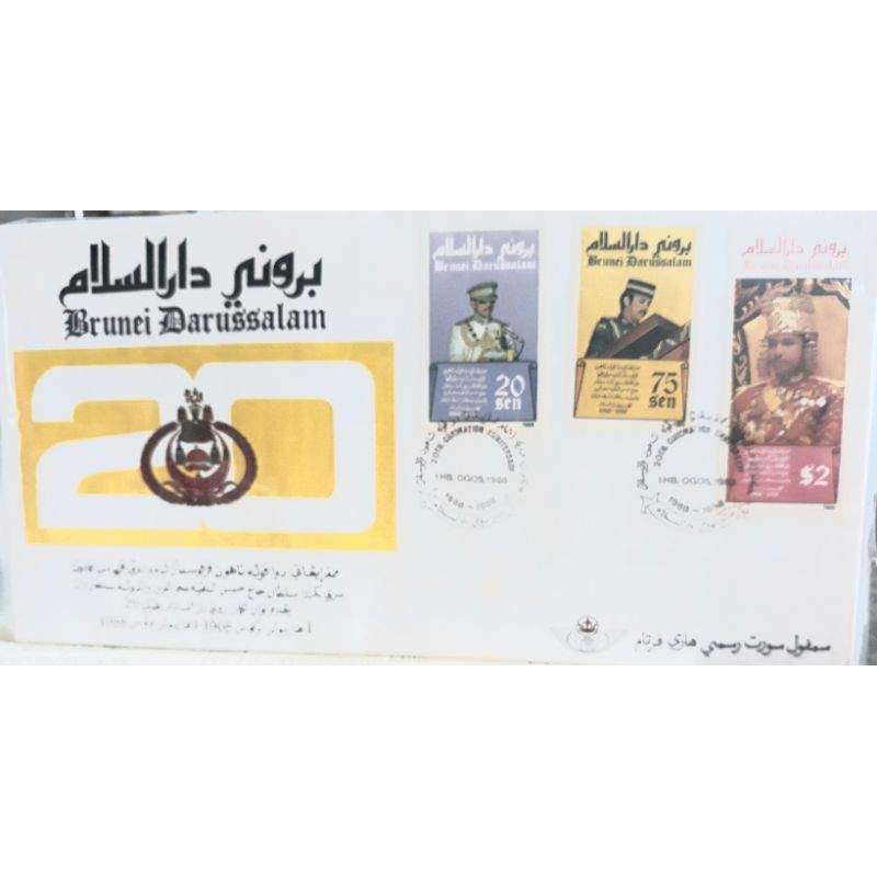 Brunei 1988 Stamps 20th Anniversary CORONATION Sultan Bolkiah FDC