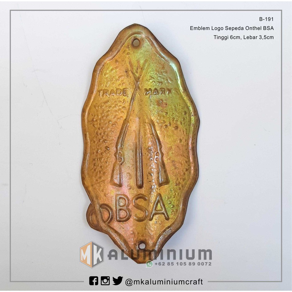 Bsa - Onthel Java Bicycle Logo Emblem Plate BSA Brand - B191 - MK Aluminum