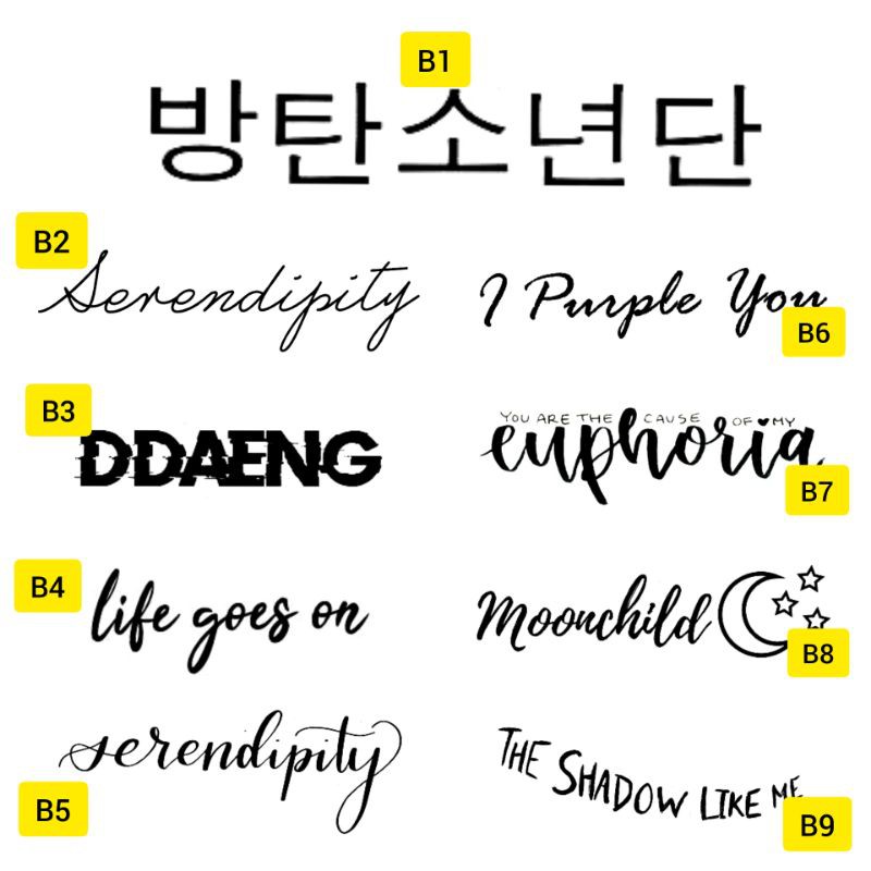 Bts Tattoos/Temporary Tattoos/Sticker Tattoos