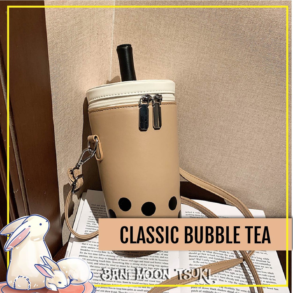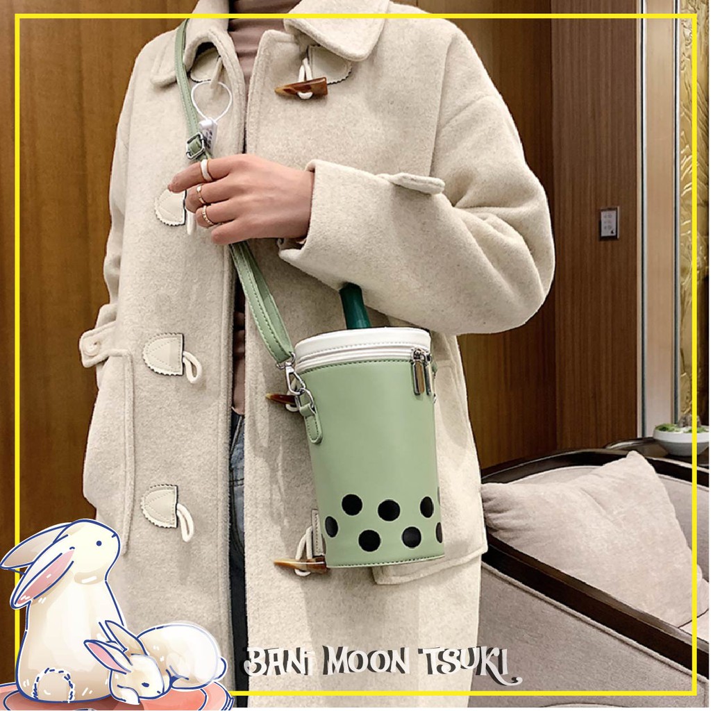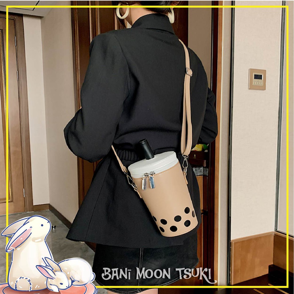Bubble Tea Boba Tea Sling Bag Zipper Handbag Big Compartment Phone Holder Lipstick Holder [Bani Moon Tsuki]