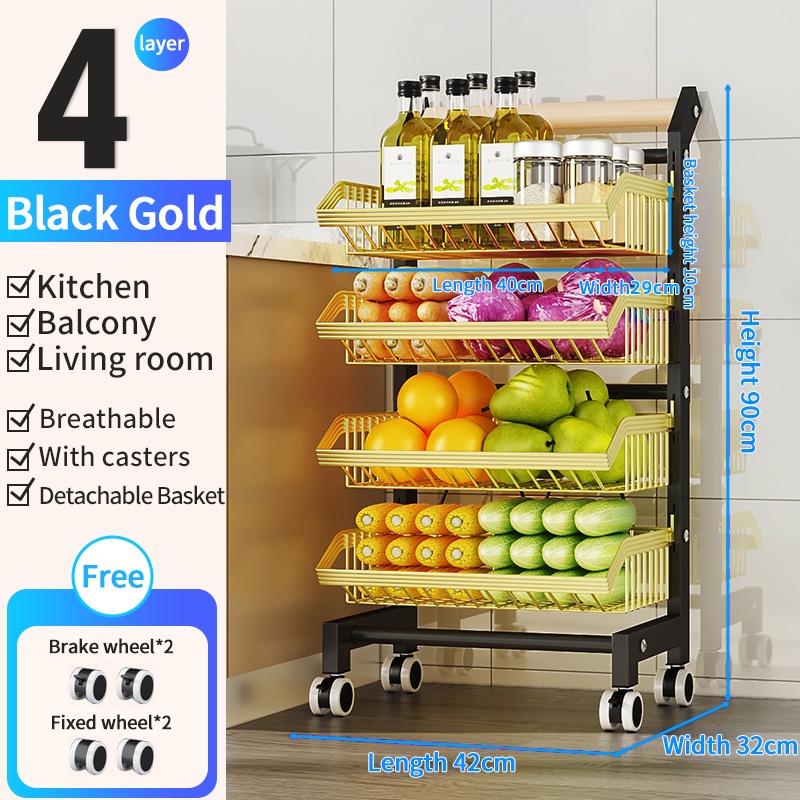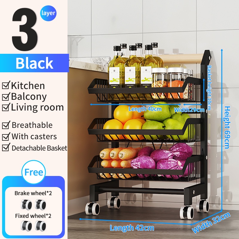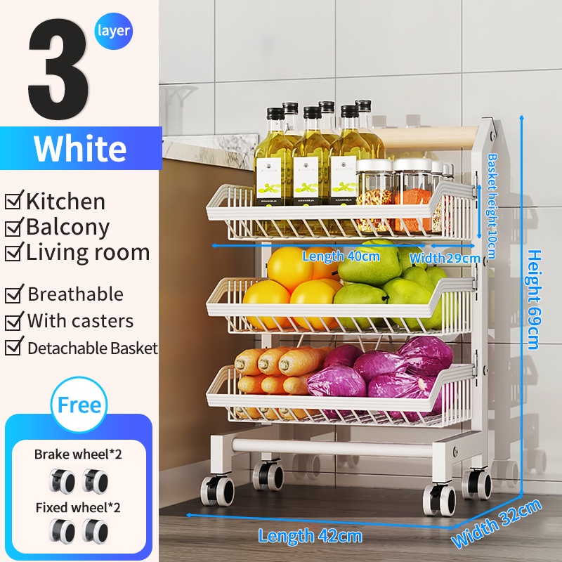 Buckle-Type Trolley kitchen Fruit And Vegetable Storage Rack Multifunctional Wheeled Narrow Slit Storage Rak Dapur