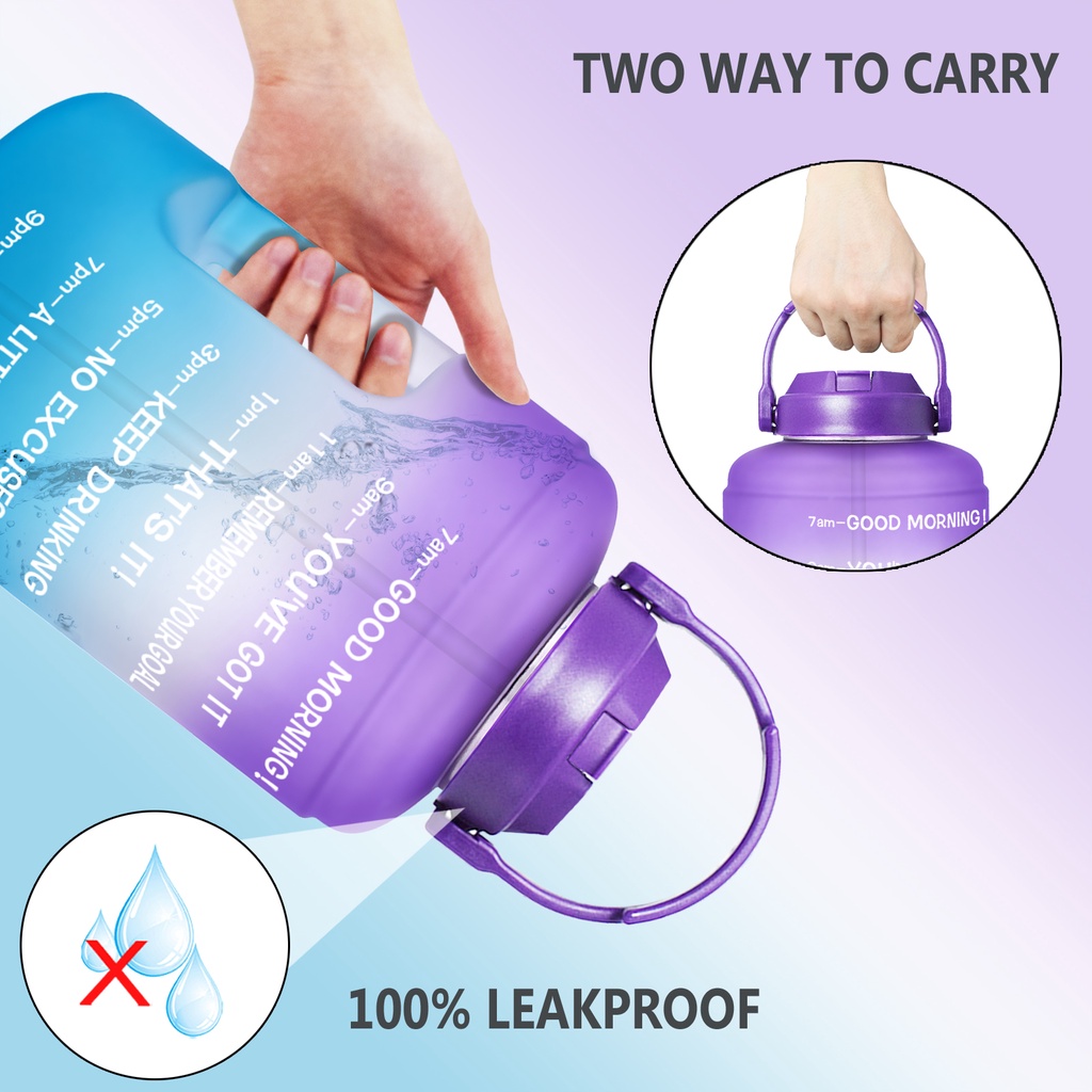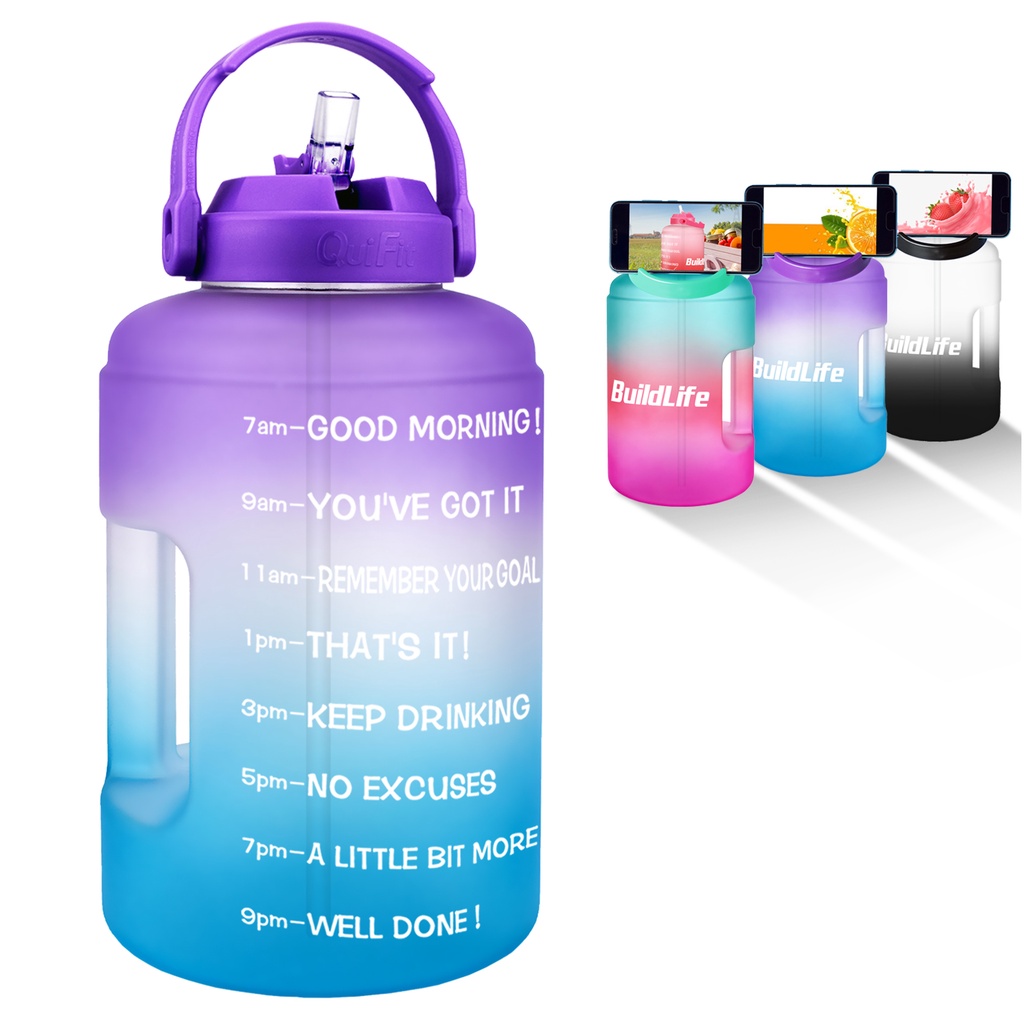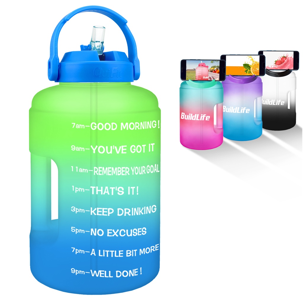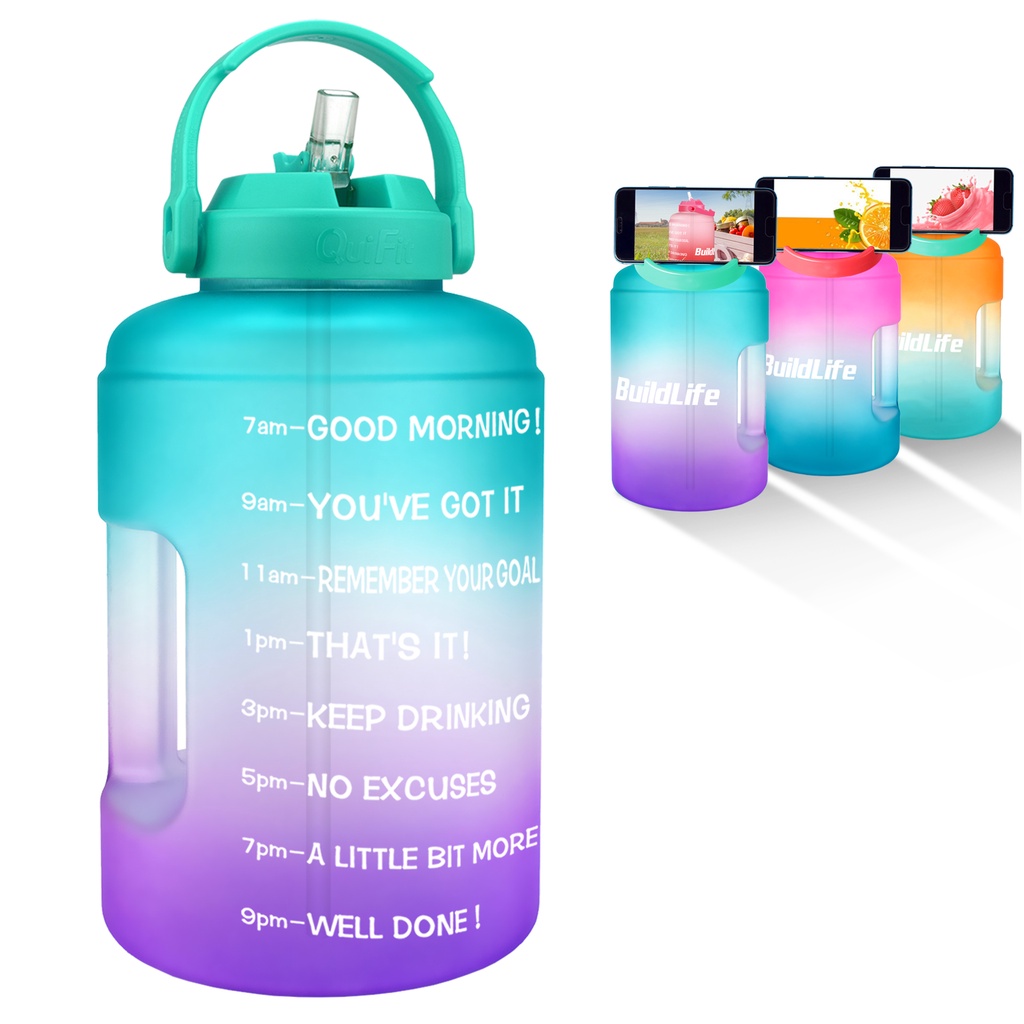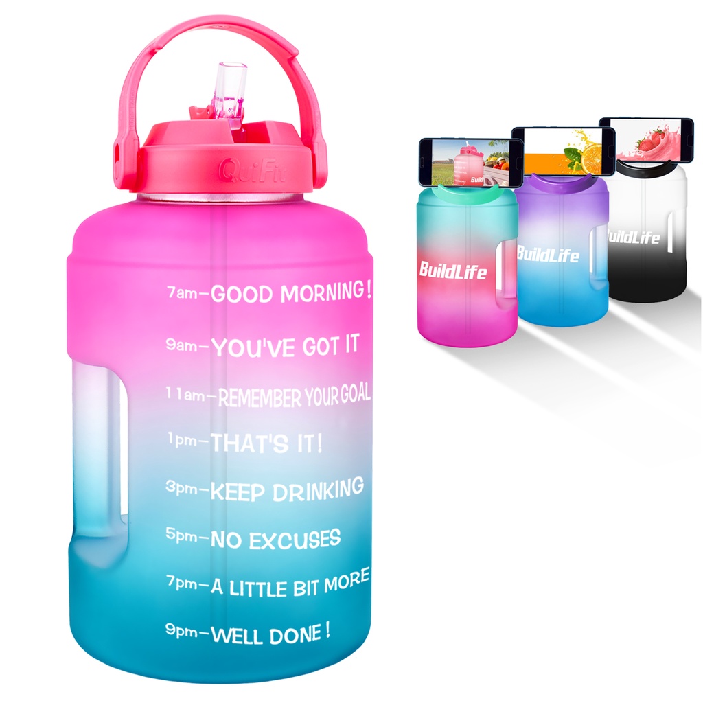BuildLife 3.78L Water Bottle Wide Mouth with StrawTime Marker Large BPA Free Reusable Leakproof Bottles