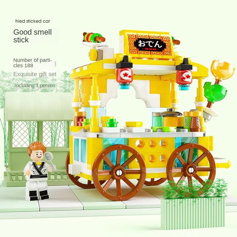 Building Blocks Ice Cream Truck Cake Shop Fast Food Children Assembled Street View Model KFC Boys Girls Small Particles Educational Assembly DIY Toys