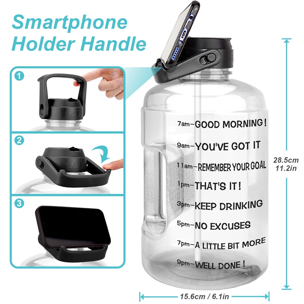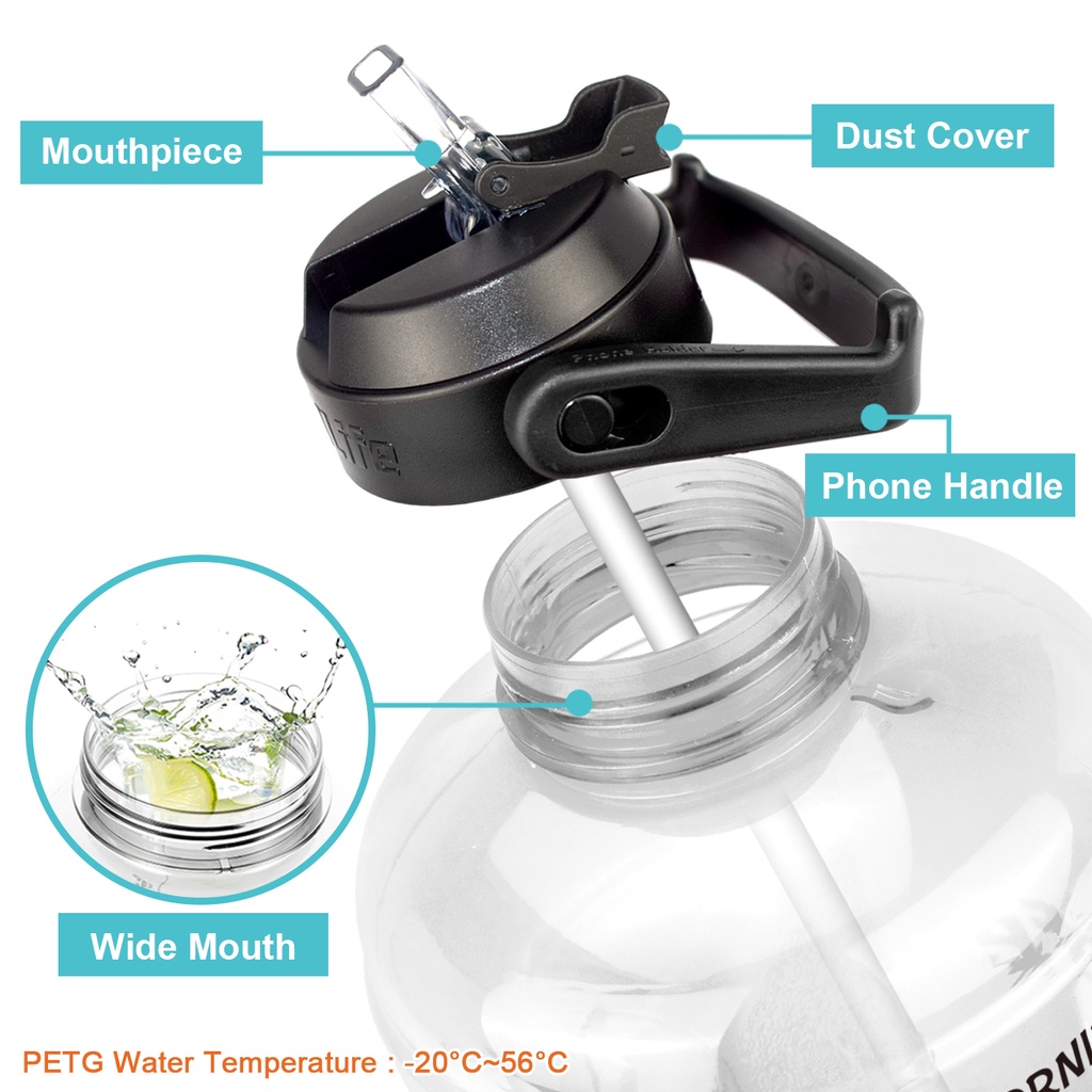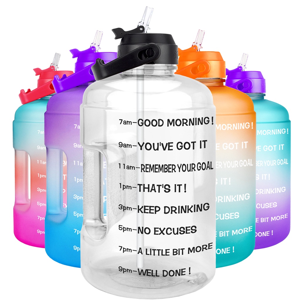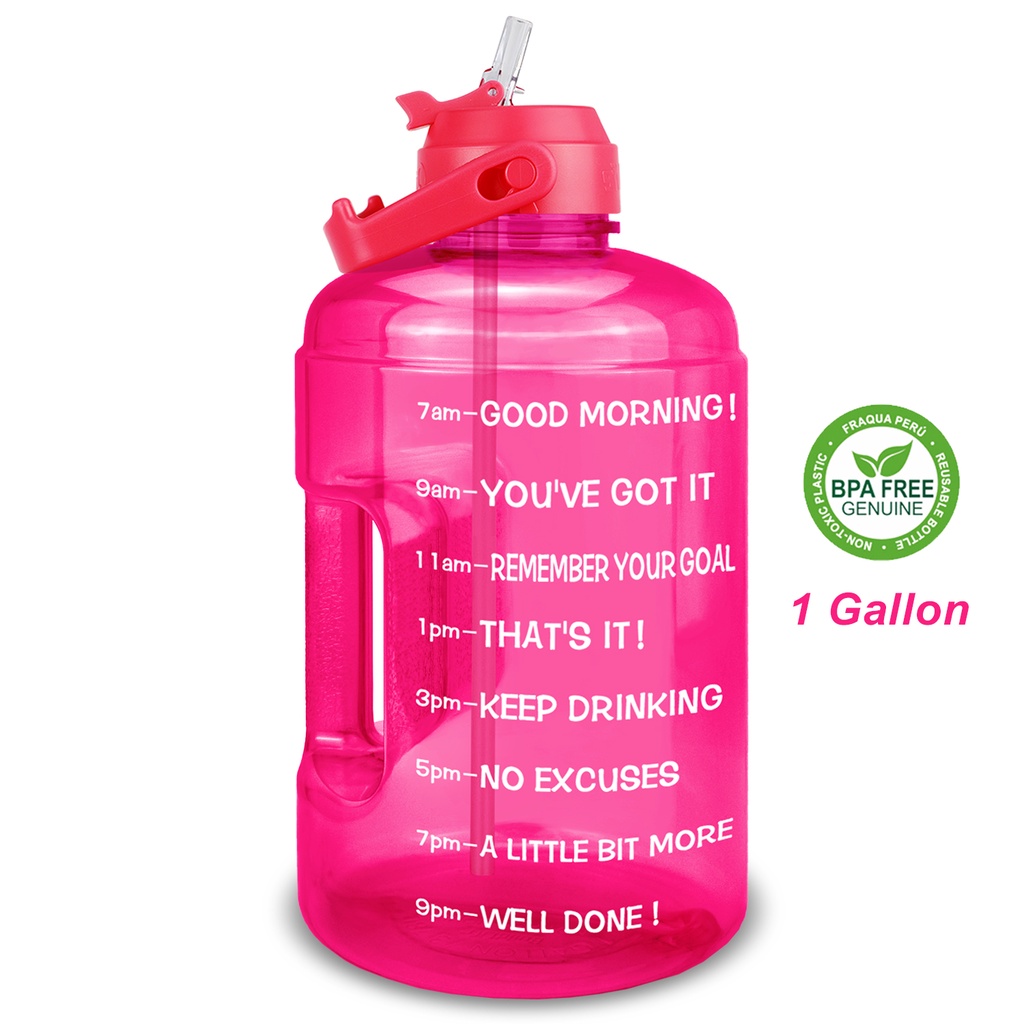 Buildlife 3.78L/128oz Gallon Motivational Water Bottle Big Capacity With Straw Time Marked To Drink More Daily BPA Free for Gym Running Sport Outdoor Botol