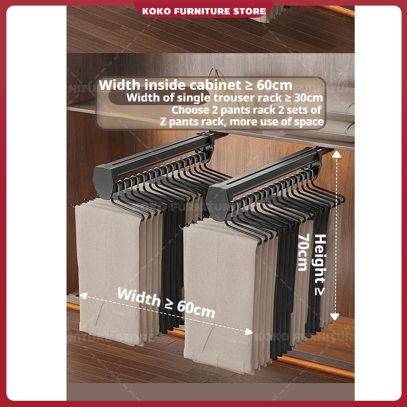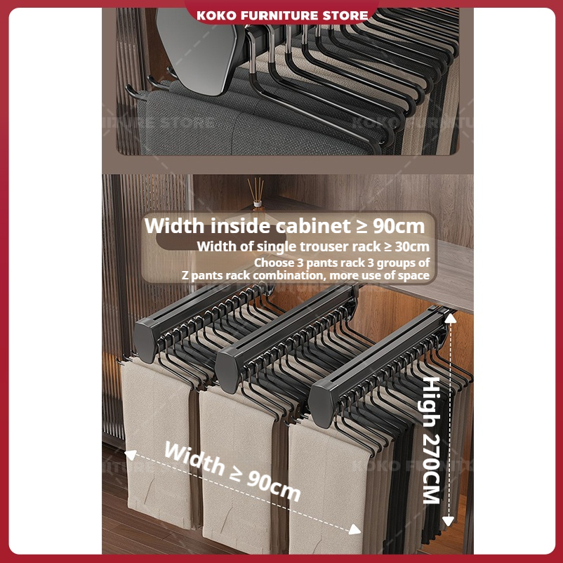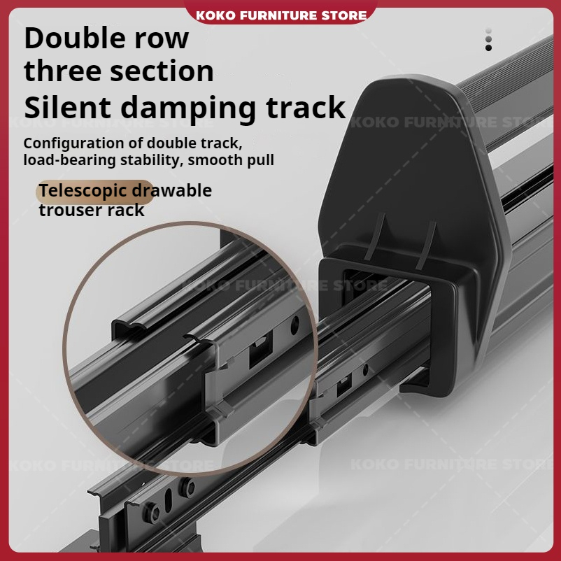 【KOKO】Wardrobe hanger storage multifunction holder top pull-out telescopic slide damping buffer pull-out clothing storage rack is installed in the wardrobe