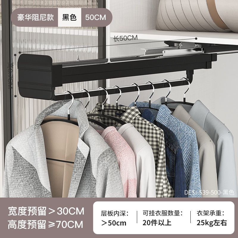 Built-in pull-out pants rack closet inside hanging rod top mounted vertical closet cabinet horizontal rod telescopic pull-out hangers
