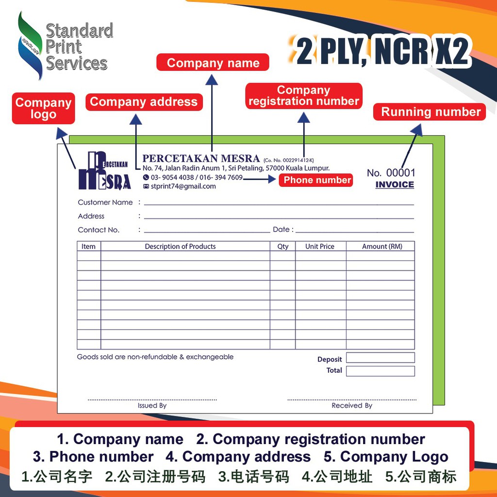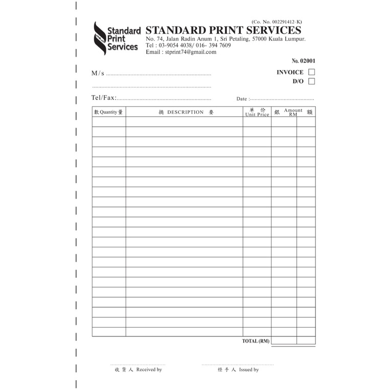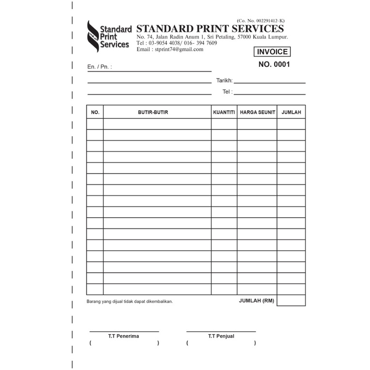 Buku Invoice/Bill Book/Buku Resit/Receipt Book/Cash Sales/Cash Bill/Official Receipt/Payment Voucher/Do A5 2ply 10Books