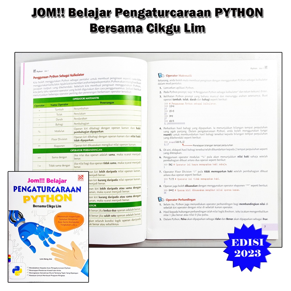 Buku Rujukan : Jom Belajar Pengaturcaraan PYTHON Bersama Cikgu Lim Untuk Asas Sains Komputer Tingkatan 2 & 3 Edisi 2023