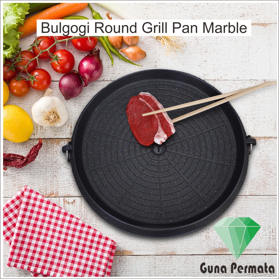 Bulgogi Marble Round Grill Pan Korean Jumbo 32 cm | Square Teflon Marble BBQ Grill