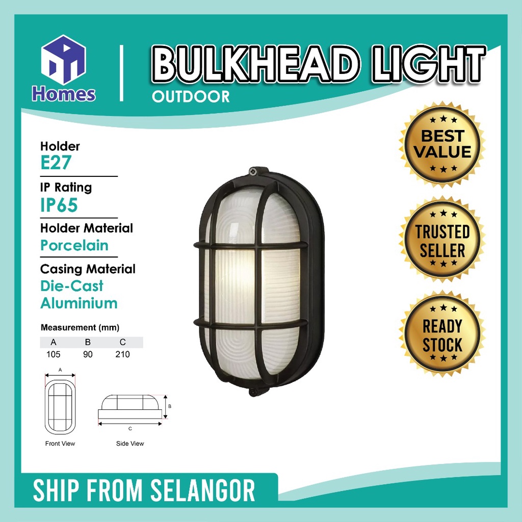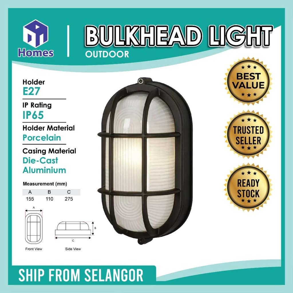 Bulkhead Lighting E27 Oval Aluminium Eyelid Aluminium Bulkhead light Fitting