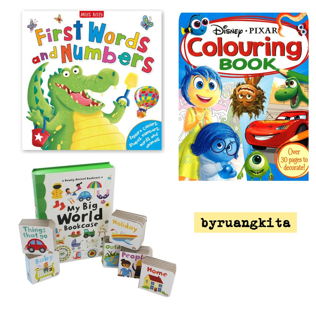 Bundle Deal : First Words and Numbers / My Big World Bookcase / Disney Pixar Colouring Book