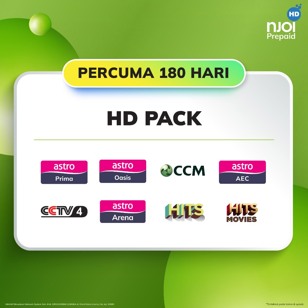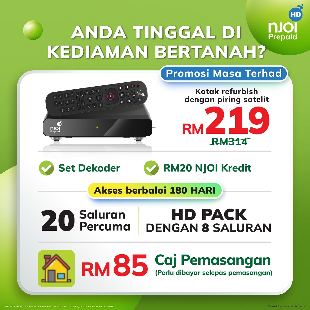 NJOI Box Set Prepaid Satellite TV - Decoder + Smart Card + Outdoor Unit + RM20 Credit + Incl (HD pack - 6 month))