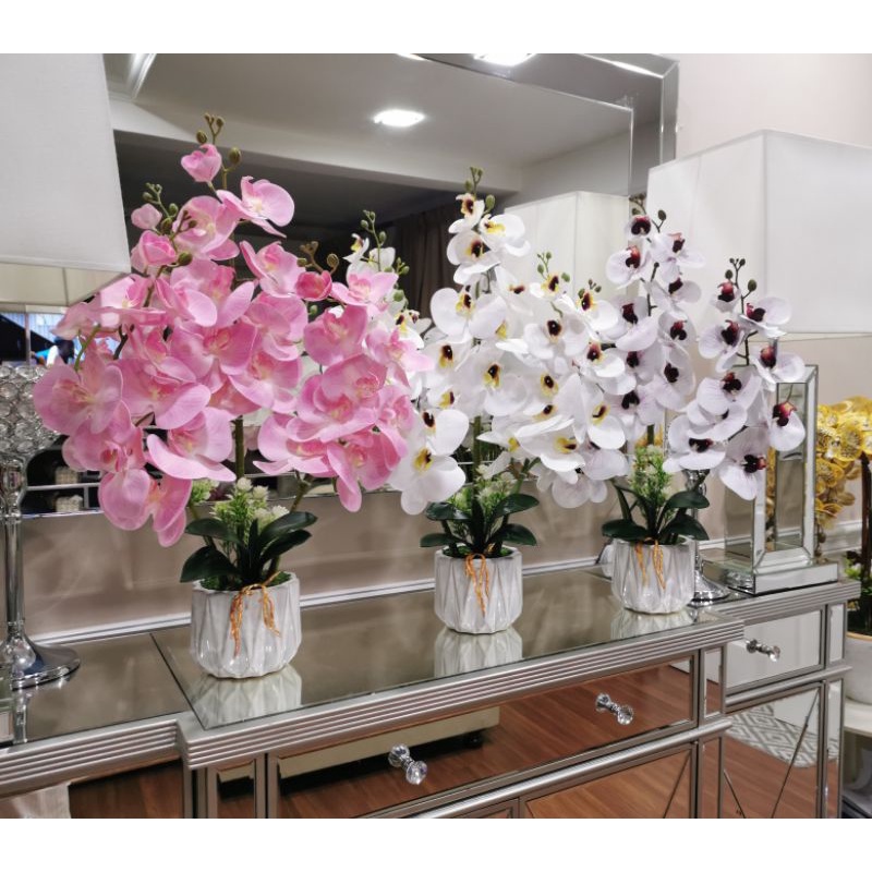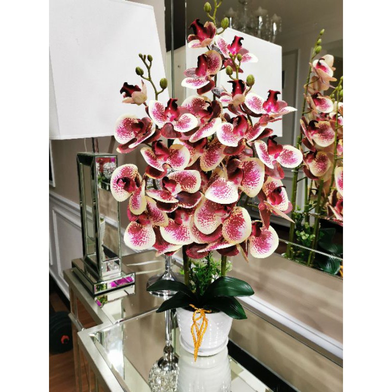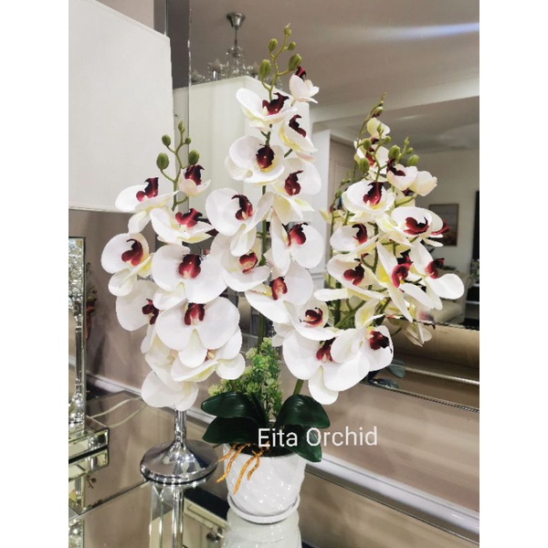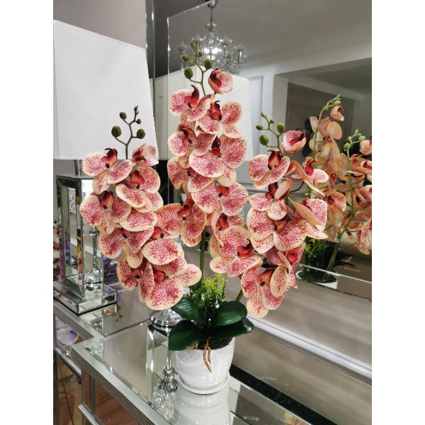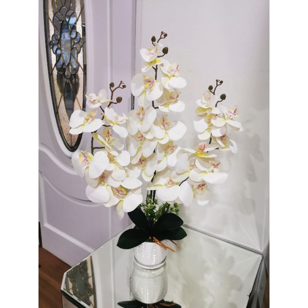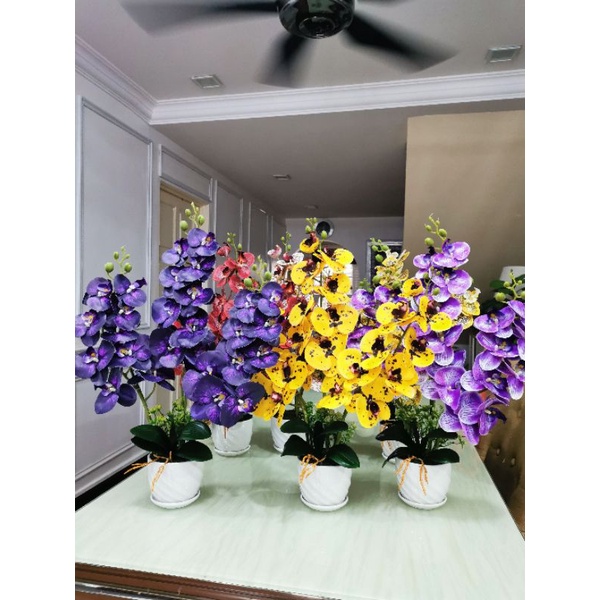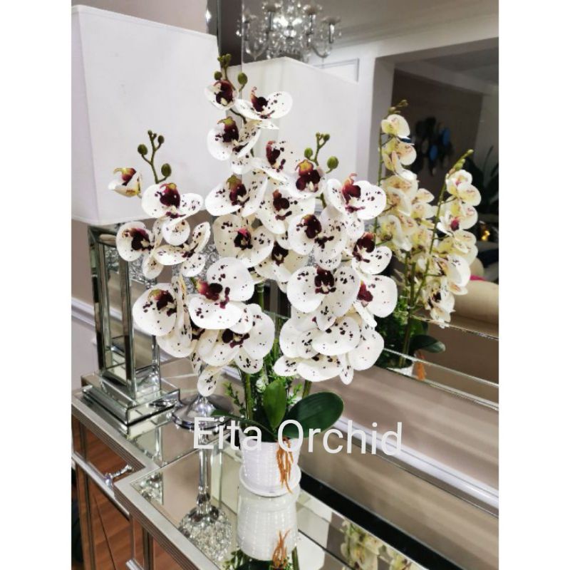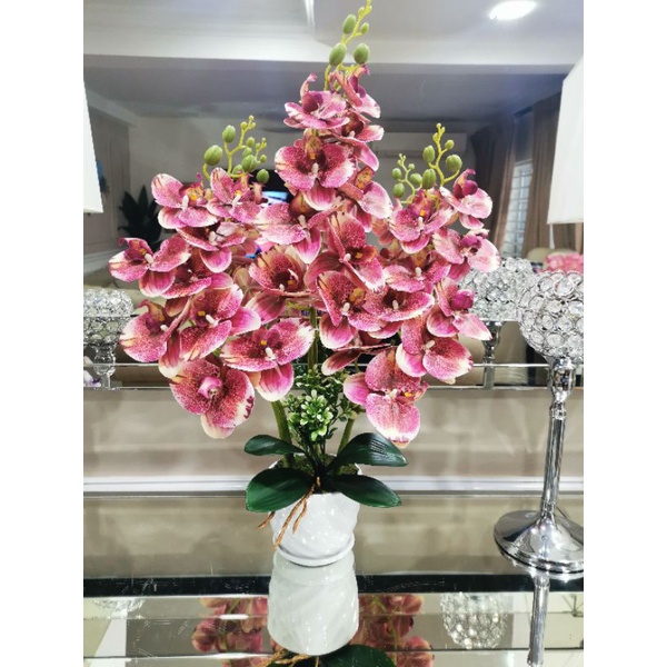 bunga orkid hiasan siap gubah orkid latex 3 tangkai pasu ceramic