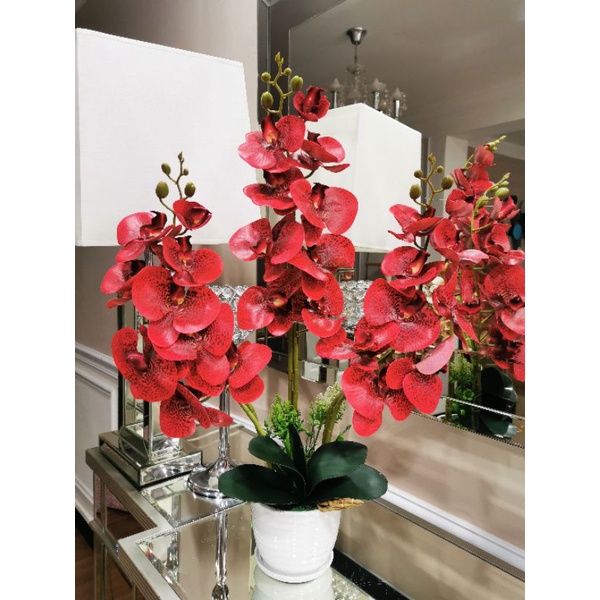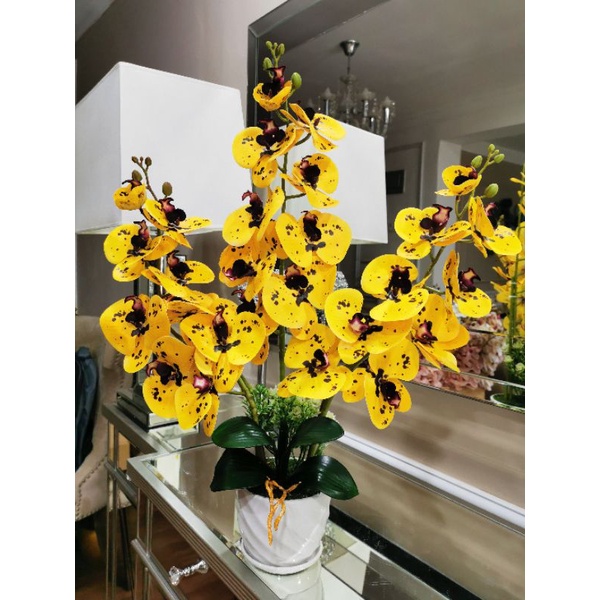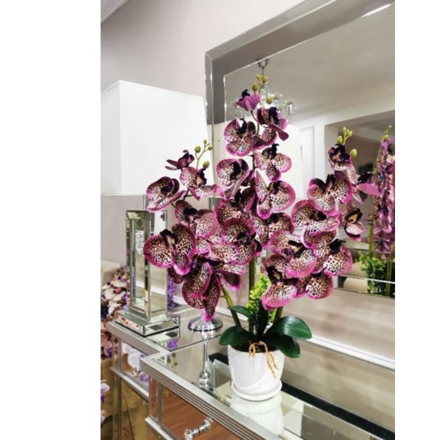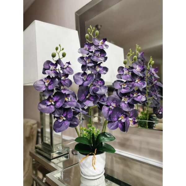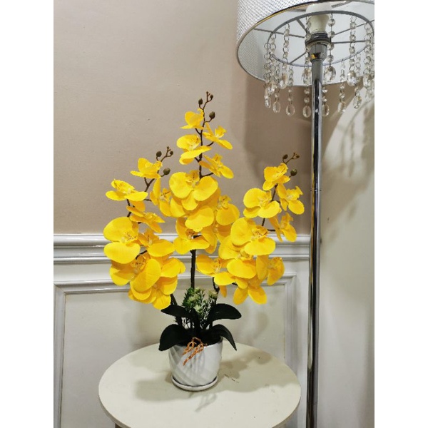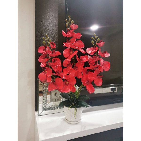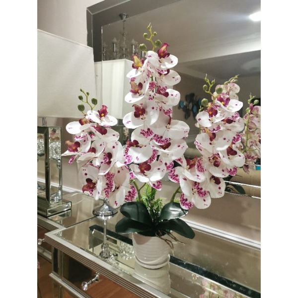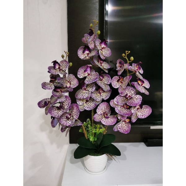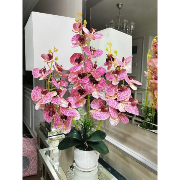 bunga orkid hiasan siap gubah orkid latex 3 tangkai pasu ceramic