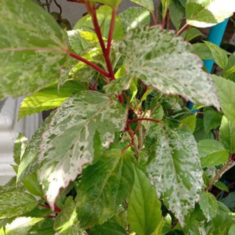 Bunga raya merah ( merah + putih) daun batik