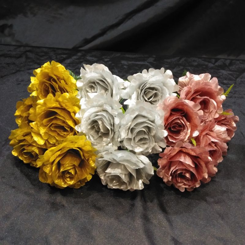 Bunga rose plastik berkilat(bunga bentuk kekal).