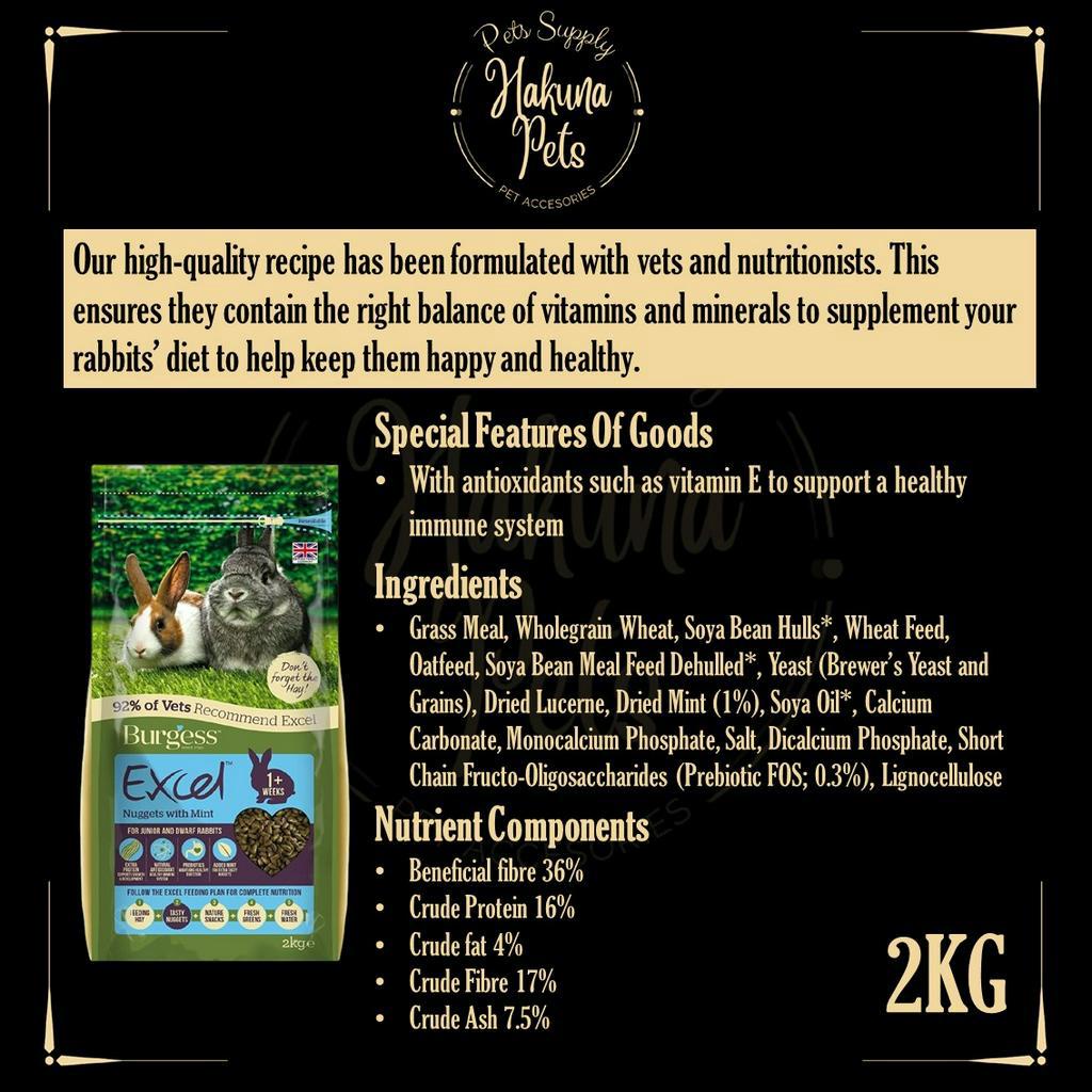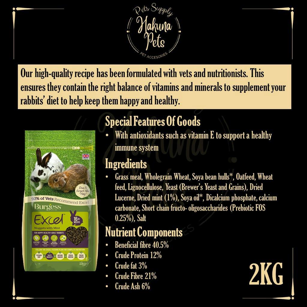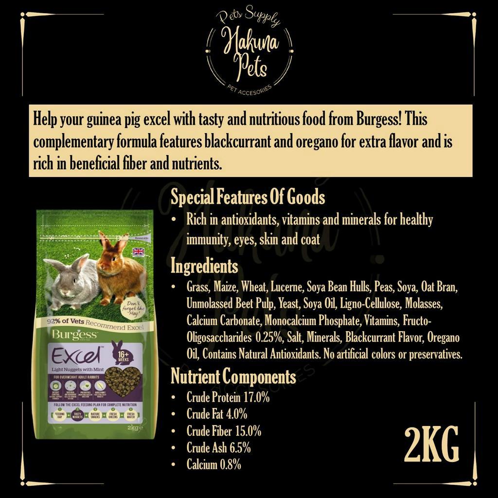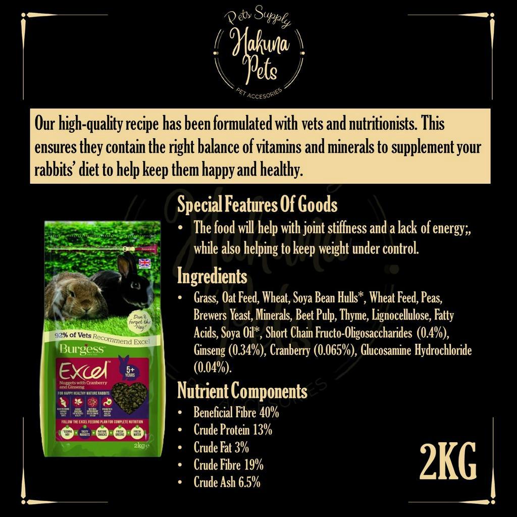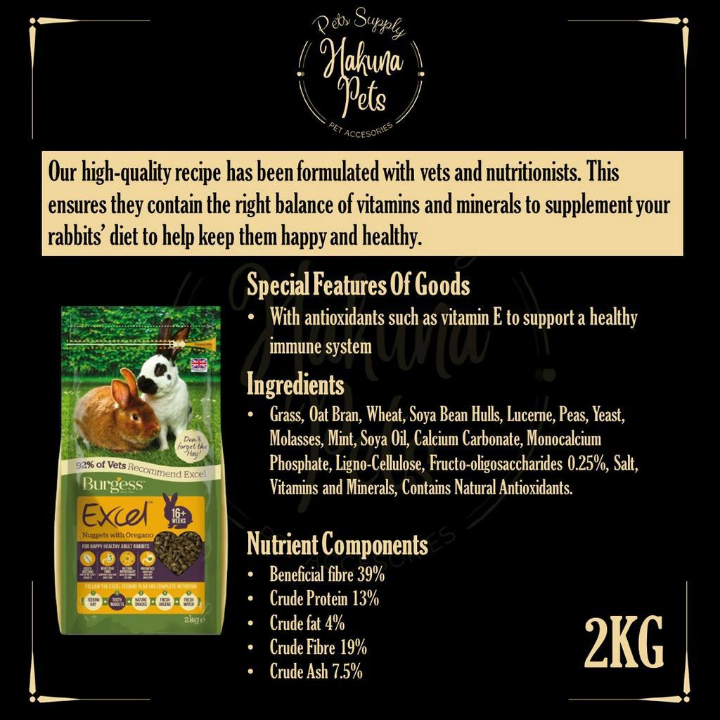 Burgess Excel Rabbit Food UK Import Premium Rabbit Nuggets 2kg bunny food high fiber vitamin rabbit food