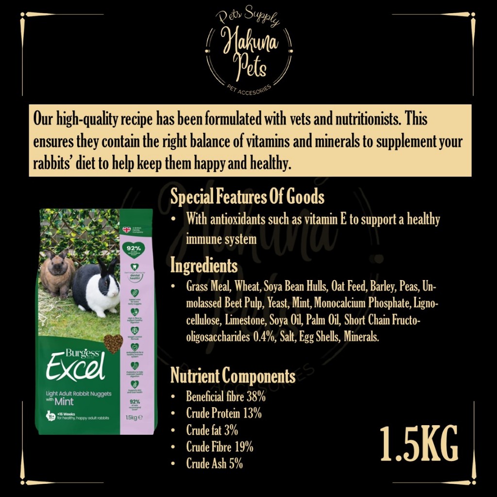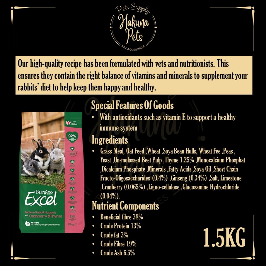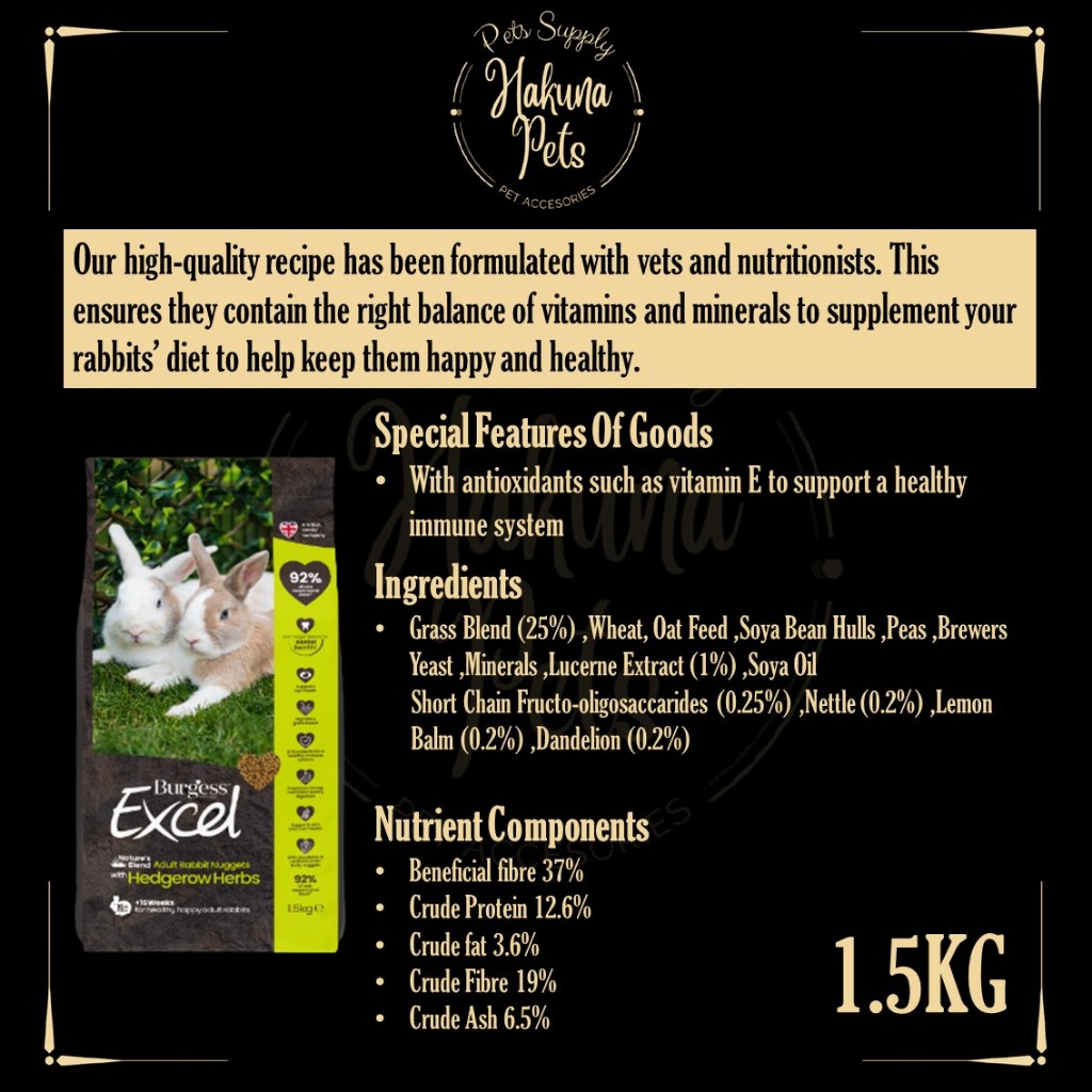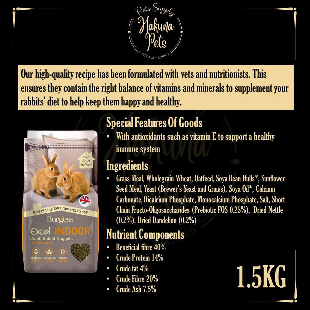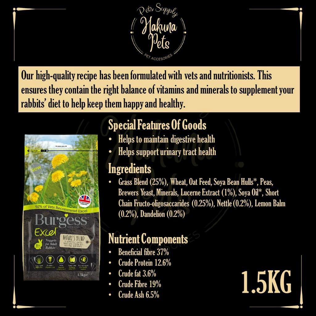 Burgess Excel Rabbit Food UK Import Premium Rabbit Nuggets 2kg bunny food high fiber vitamin rabbit food
