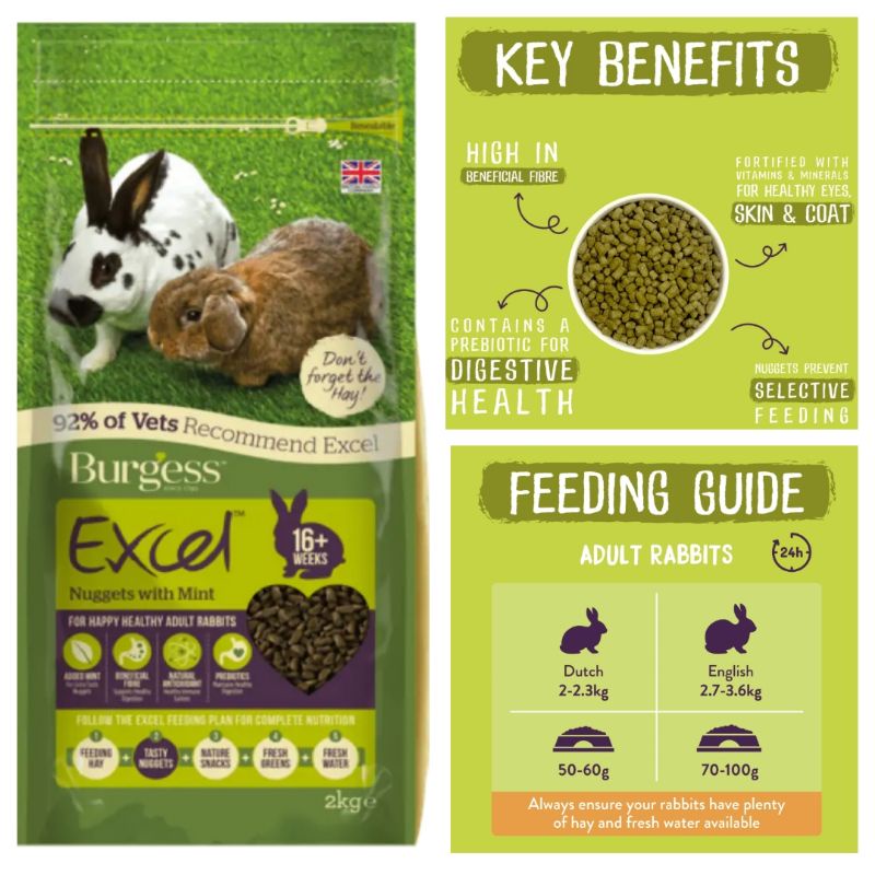 Burgess Excel Rabbit Food UK Import Premium Rabbit Nuggets 2kg bunny food high fiber vitamin rabbit food