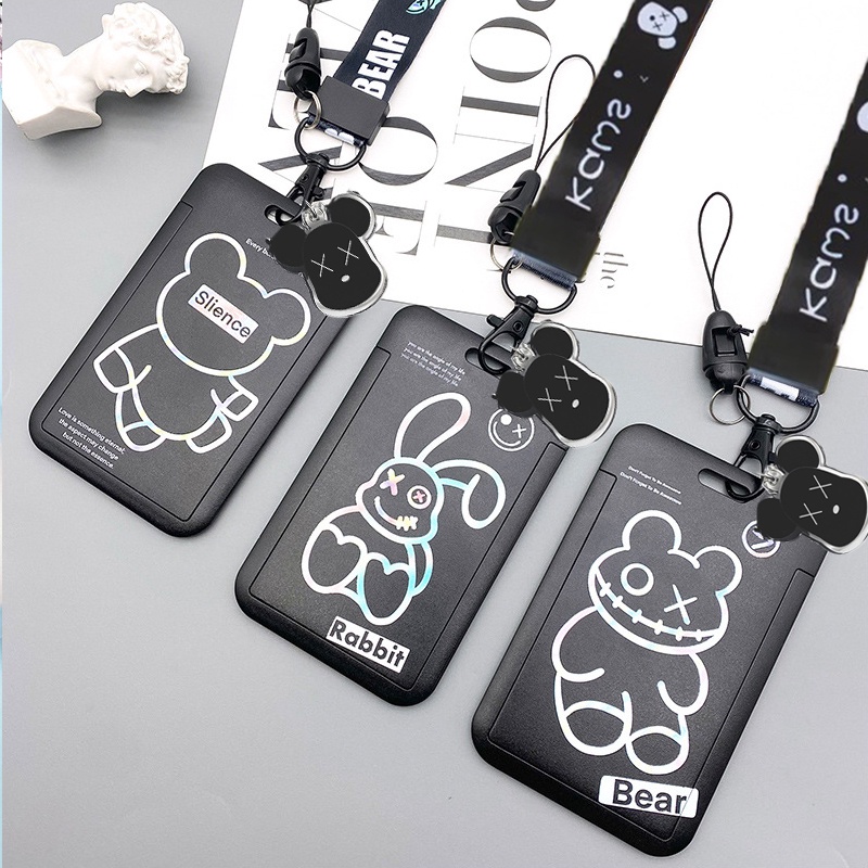 Bus Card Holder Student Meal Card Kindergarten Pick-up Card Set Brand Cute Easy-to-pull Bear Lanyard