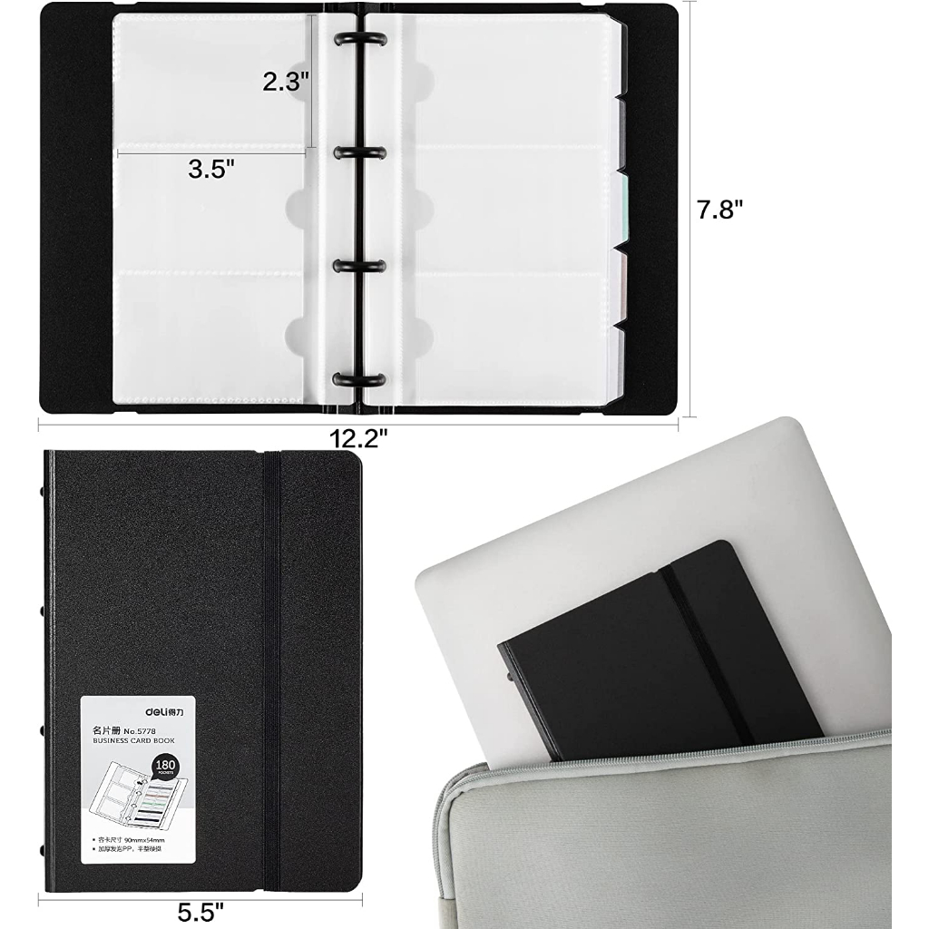 Business Card Organizer Holder Book, Credit Binder File Sleeve Storage, Name Card Holders Men & Women, 5 Index Tabs