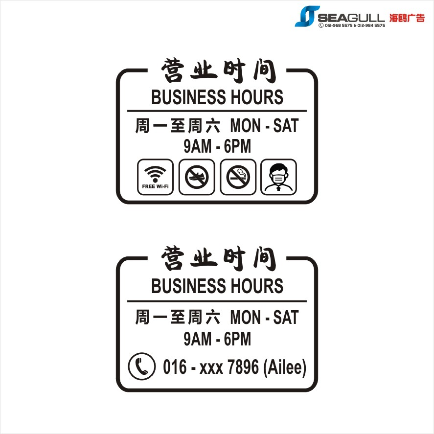 Business Hour Sticker / Operation Hour / Hour Decal / Vinyl Decal / Plotting Sticker / Door Sticker / Window Decoration