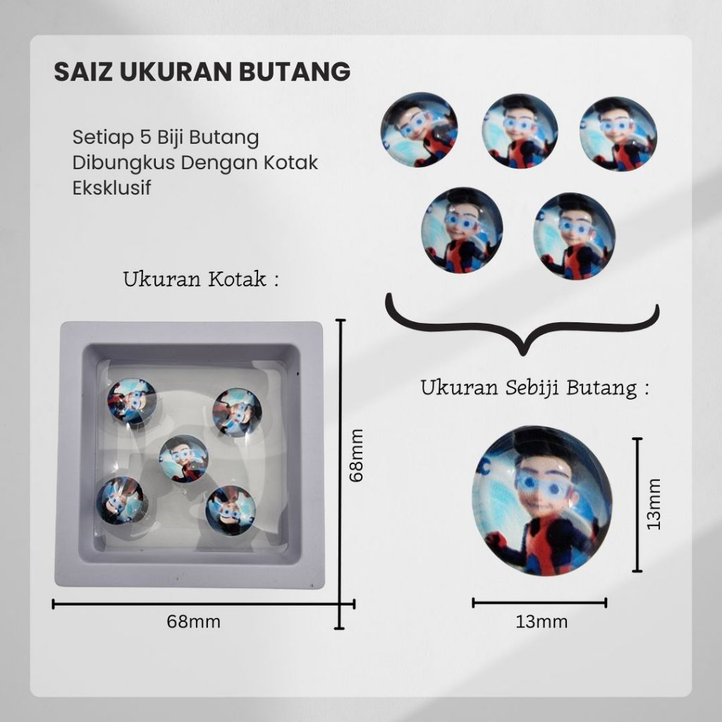 Butang Brooch Baju Melayu Kartun Comel Cute Budak Kanak-Kanak Lelaki Spiderman Upin Ipin Ejen Ali