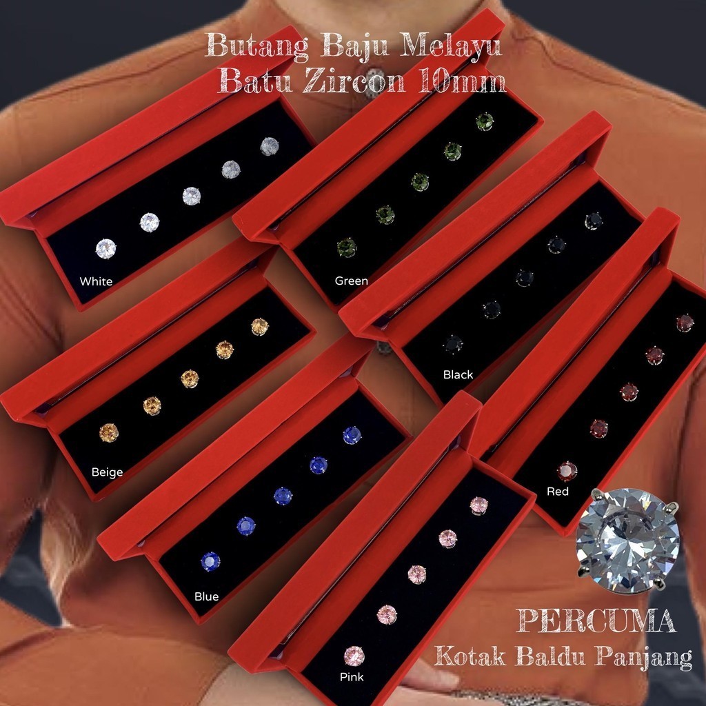 Butang Baju Melayu Set (5 pcs) Batu Zircon 8mm 9mm 10mm FREE Kotak Baldu Panjang Malay Button RAYA 2026 Eksklusif Nikah