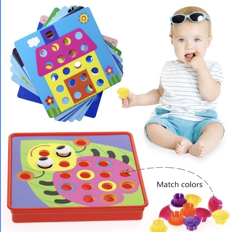 Button Idea Educational Toys (12 pictures +50 Button Nails) Genius Art Button /Colour matching / Early Learning Toy