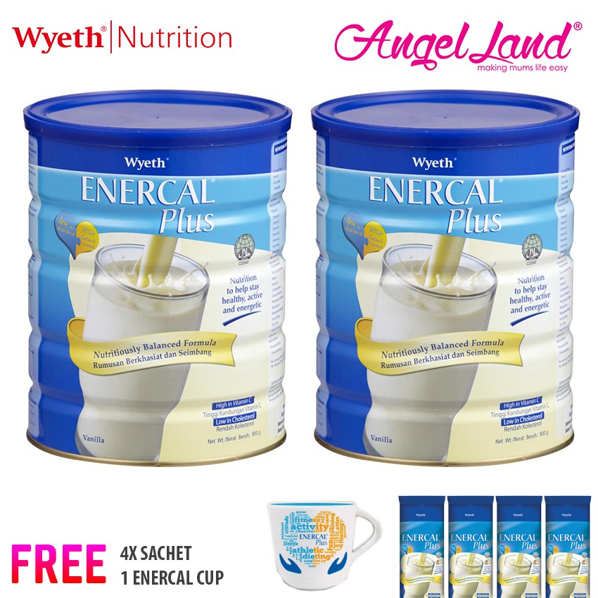 Buy 2x Wyeth Enercal Plus Vanilla Milk 900g + Free 4x Sachet 52gm+1 Enercal Cup
