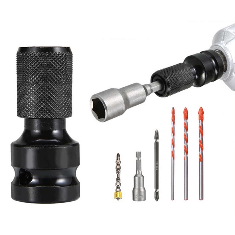 BuzzTech 1/2 Inch Hex Socket Converter Square Female To 1/4 Inch Hex Shank Socket Adapter Quicker Release Converter
