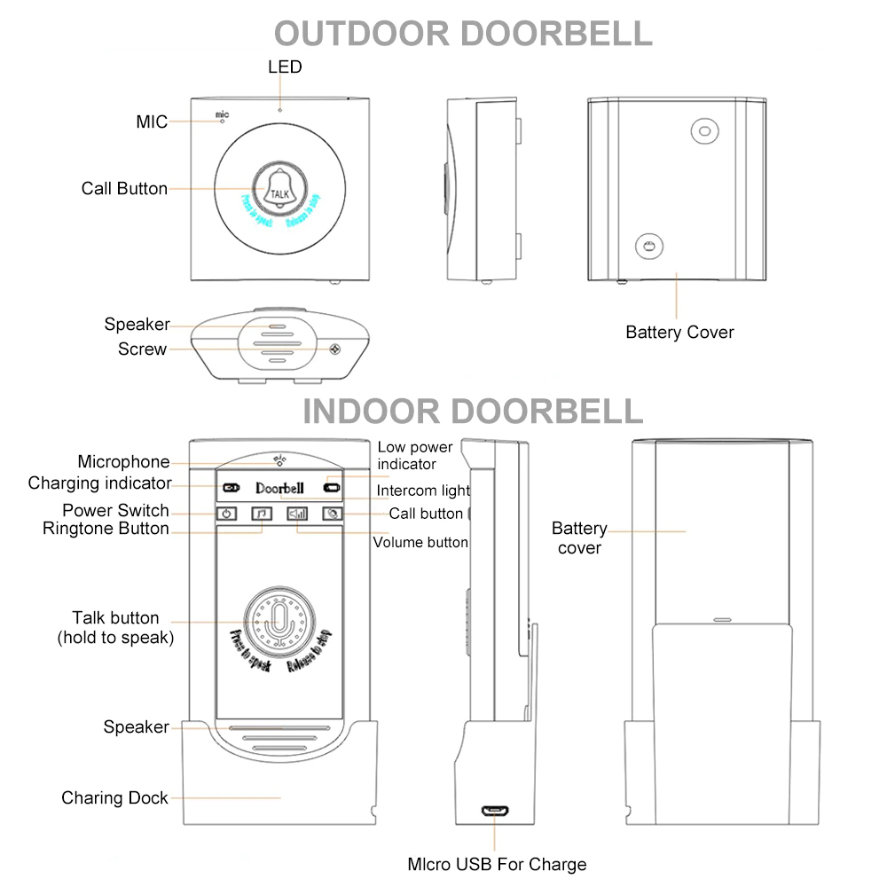 BuzzTech Wireless Intercom Doorbell Home Wireless Voice Intercom Doorbell Waterproof Wireless Intercom Doorbell Two Way