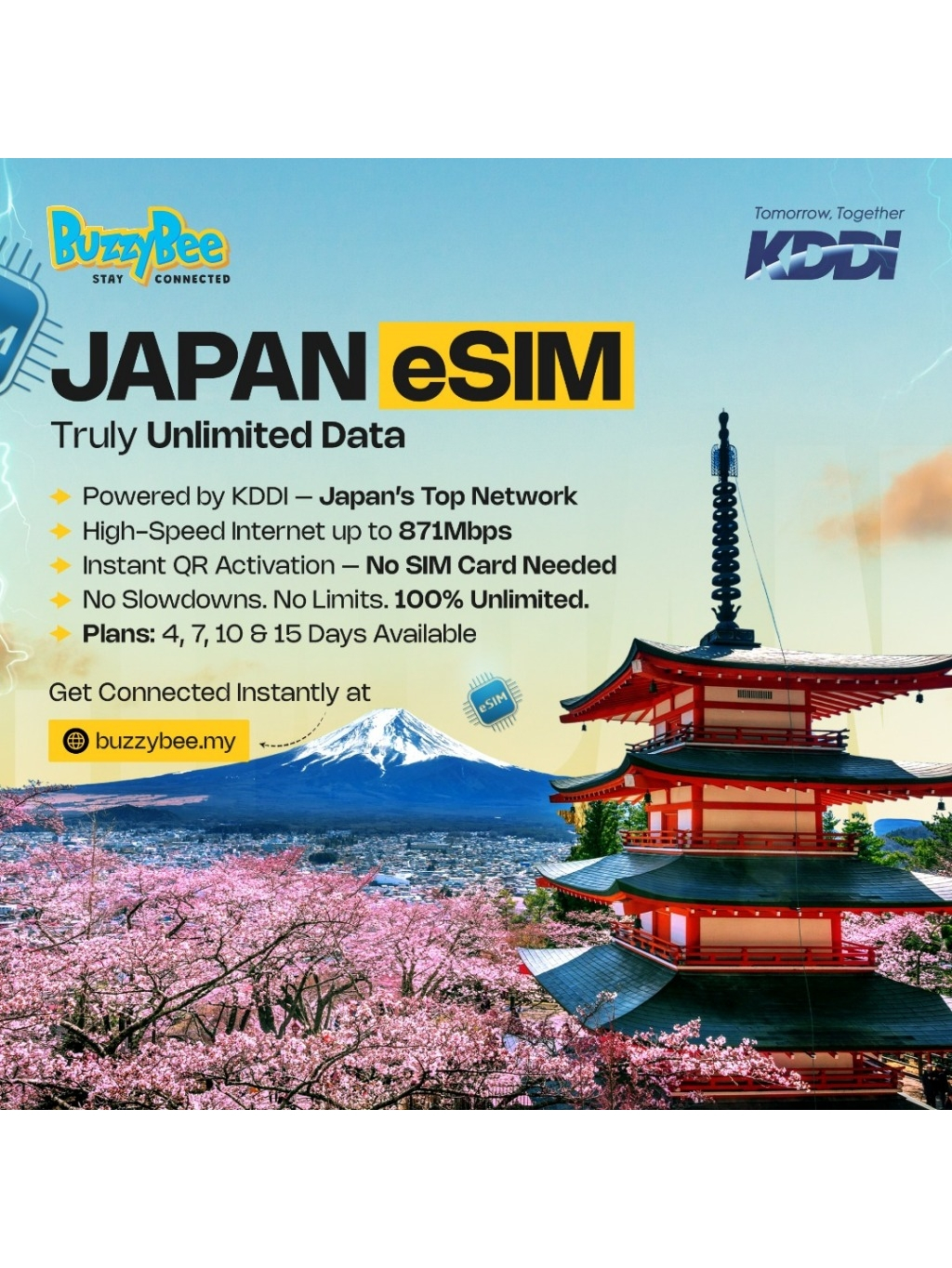 BuzzyBee.MY [Local Japan eSIM] - Truly unlimited 1000GB/Daily Unlimited/Total Data