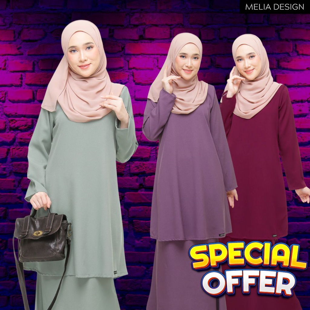 By Melia Design Baju Kurung Moden Riau Plain Murah Viral Ironless Tak Payah Gosok Merdeka Raya Sedondon