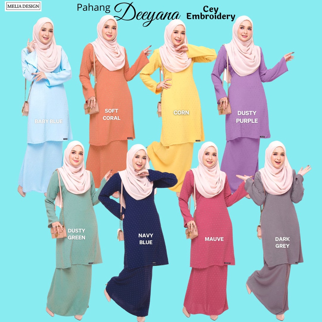 By Melia Design Baju Kurung Pesak Pahang Cey Embroidery Polka dot Kain Cubit Murah Viral Kurung Cikgu Deeyana Ready Sto
