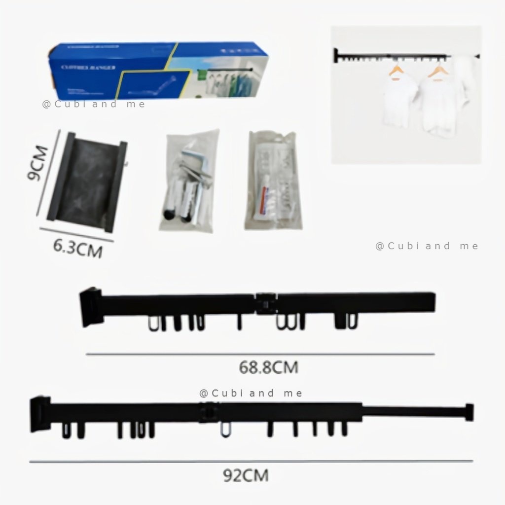 C&M 2 Rod Folding Clothes Hanger Wall Mount Retractable Cloth Drying Rack Indoor & Outdoor Space Save Aluminum Rack