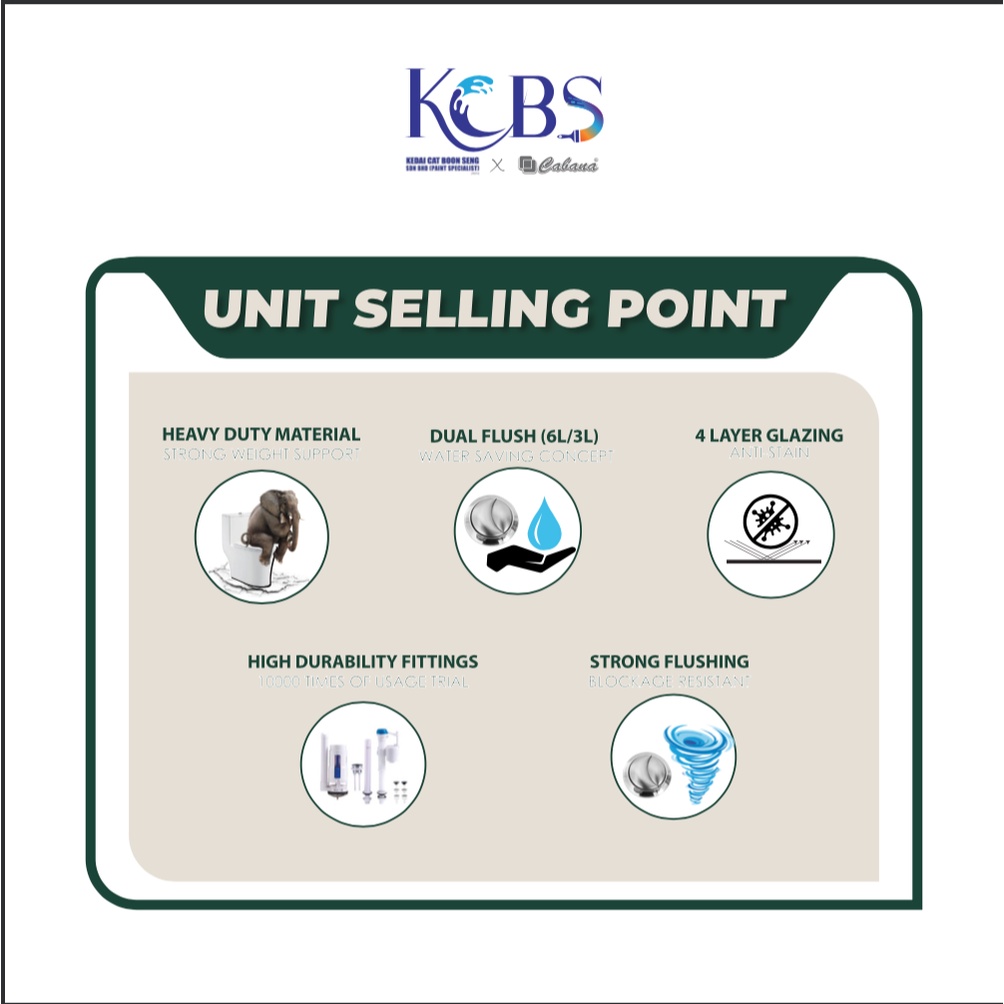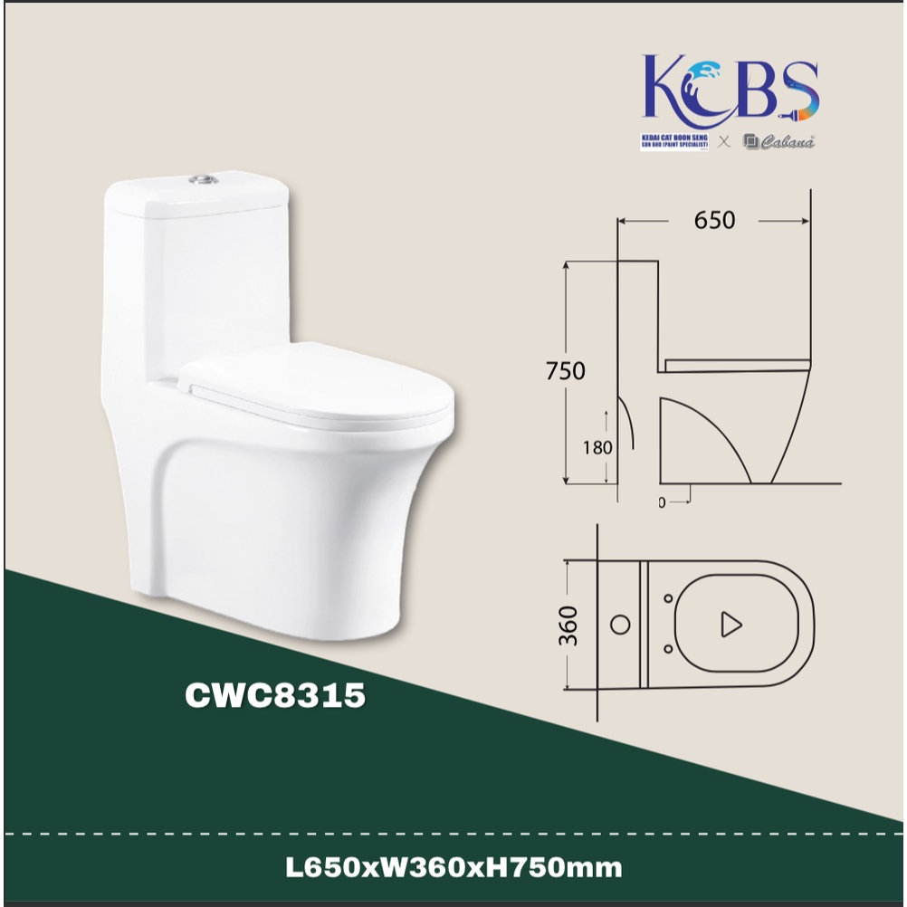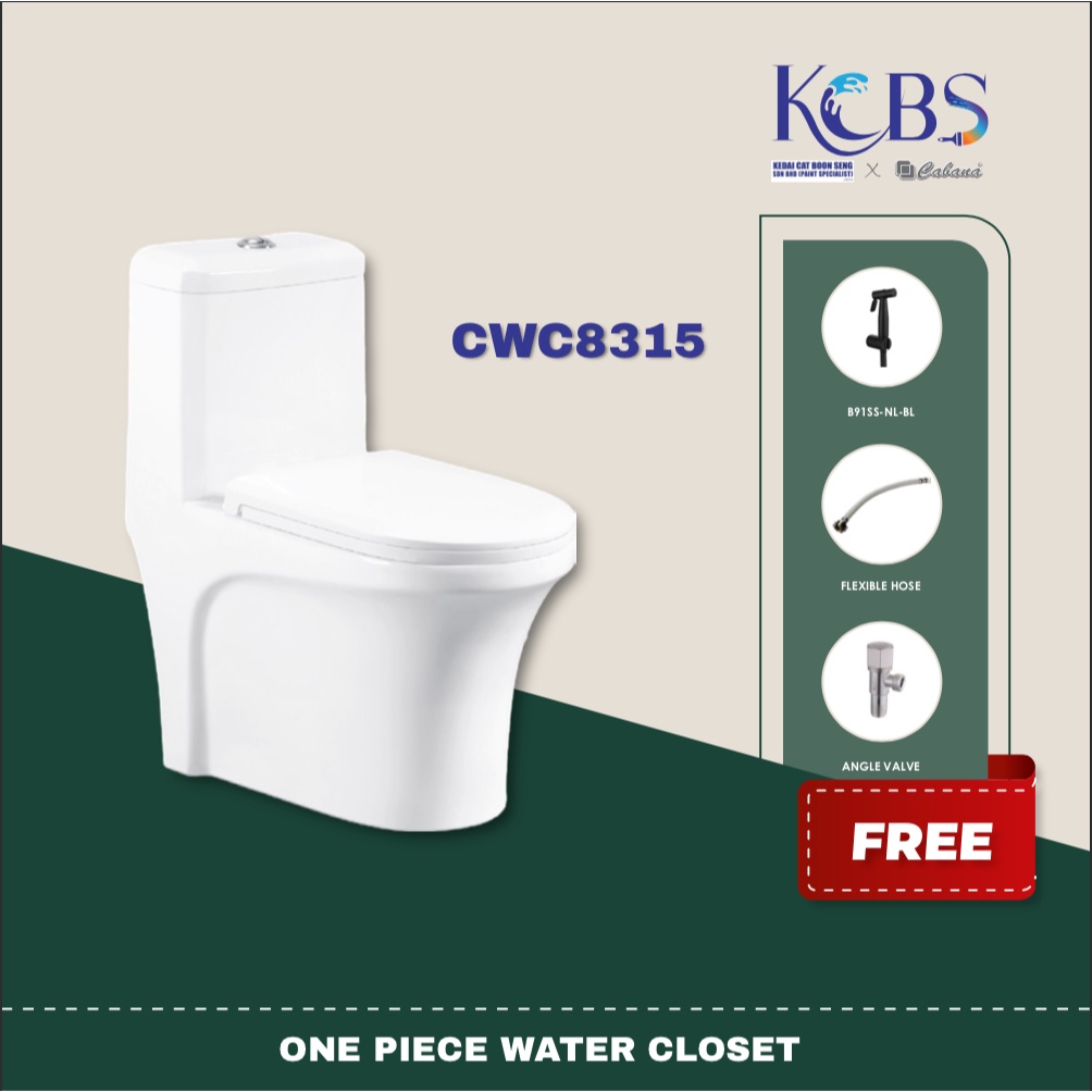 CABANA CWC8315 ONE Piece WC / Jamban / Tandas toilet come with washdown flushing system 250mm 10 inchi