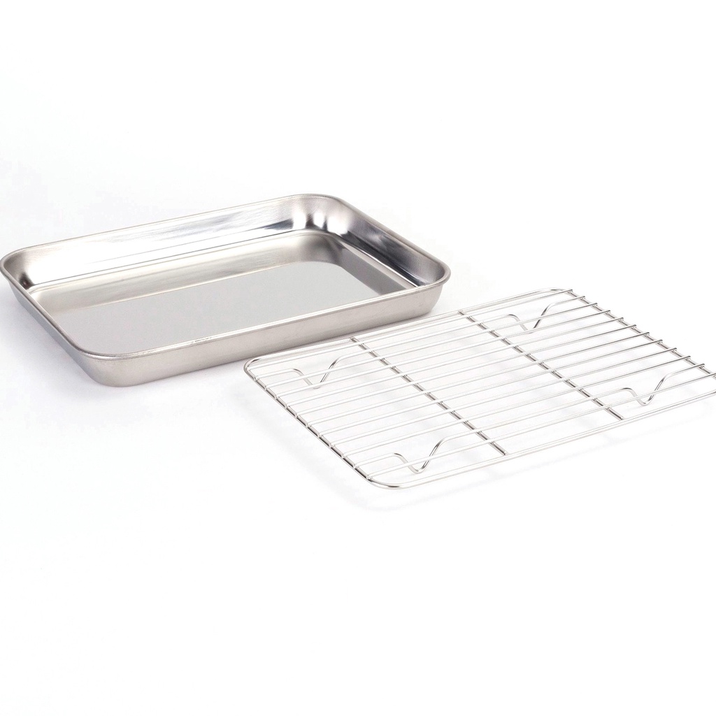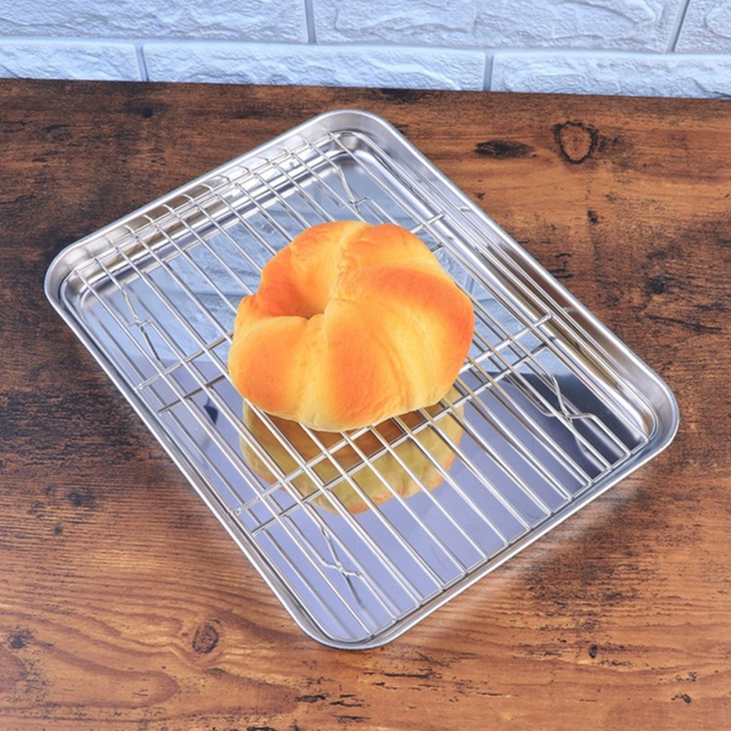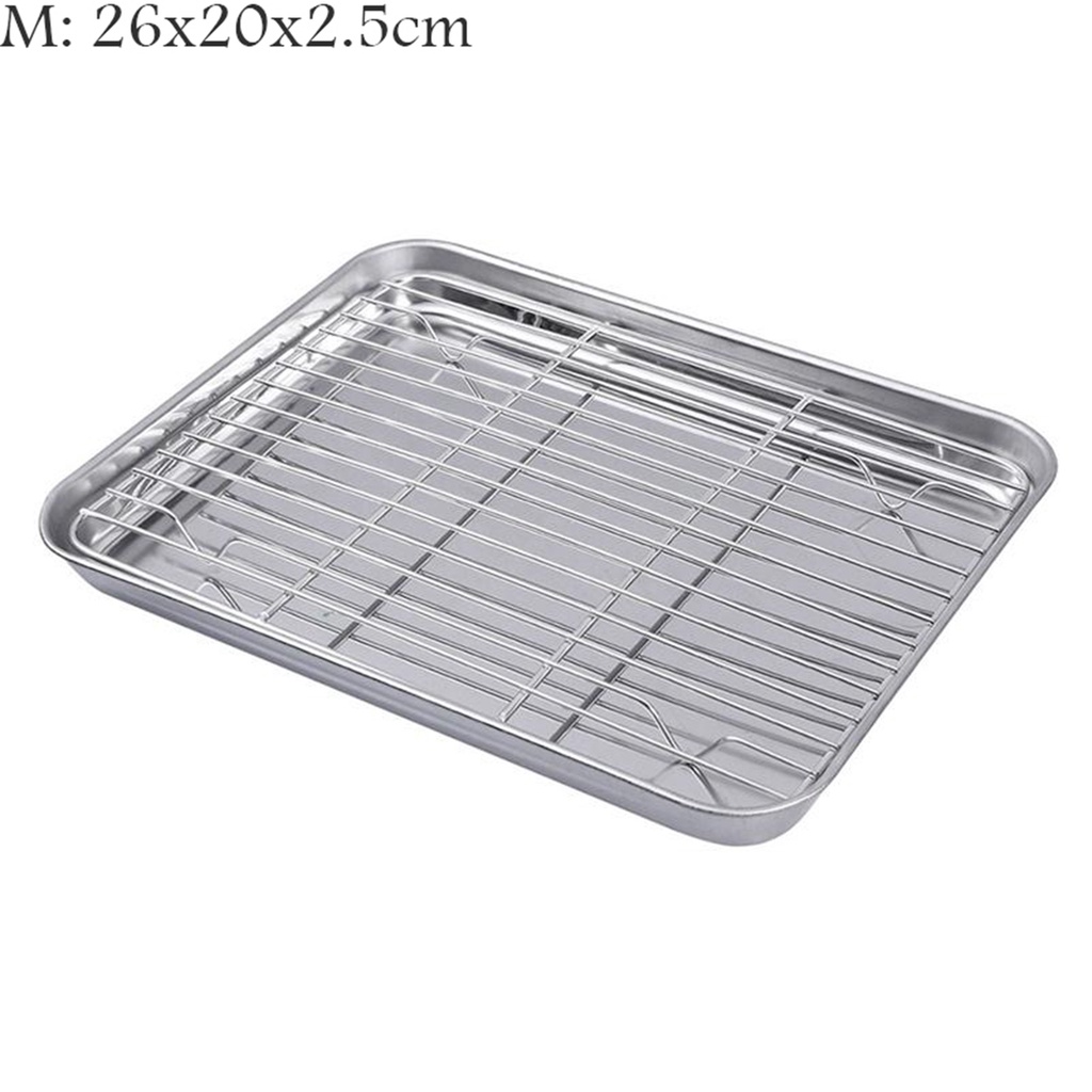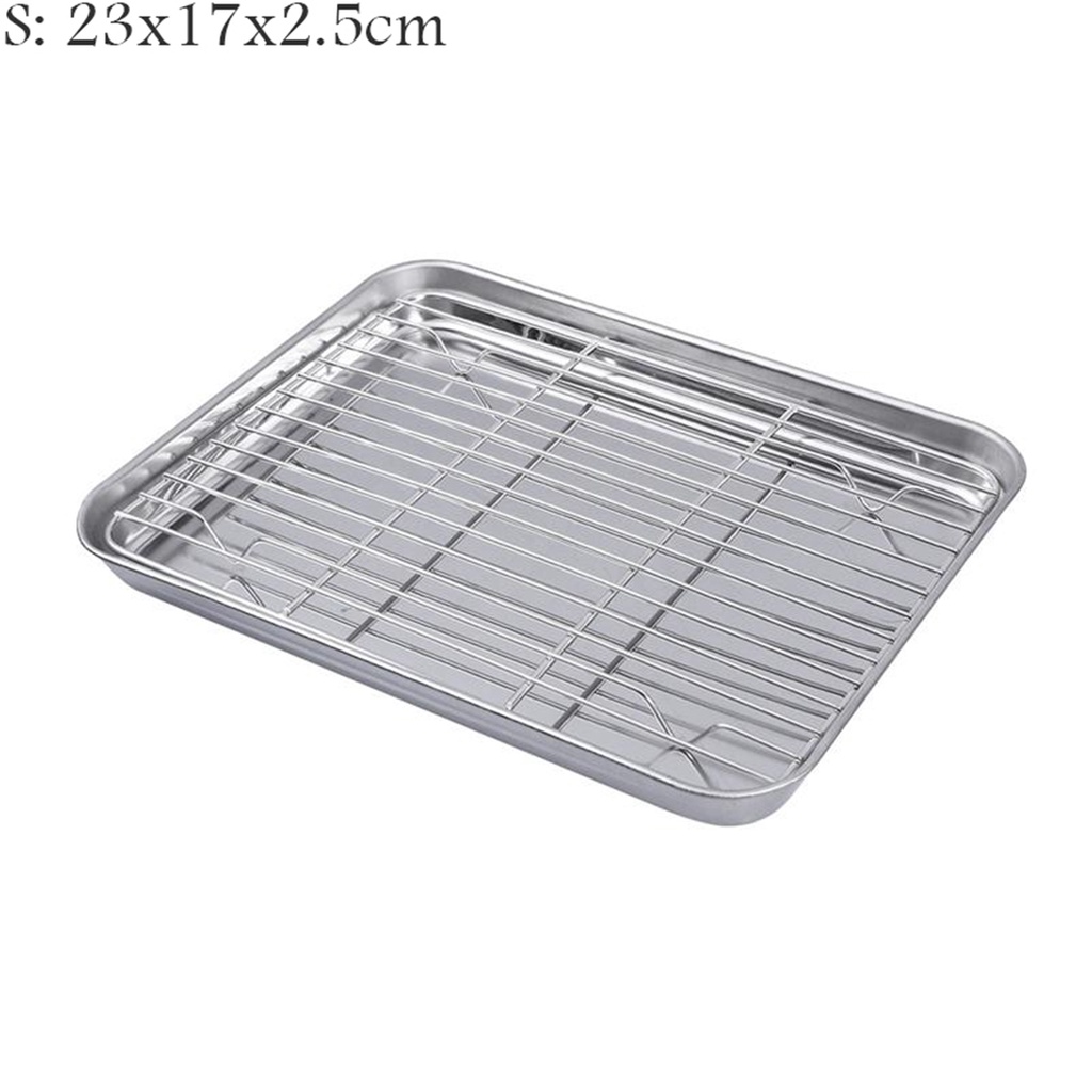 CABEZA Rectangular BBQ Plate Stainless Steel Cooling Grid Rack Baking Tray Pan Draining Oil 2 Sizes Grill Cooking Tools Kitchen Oven Barbecue Sheet